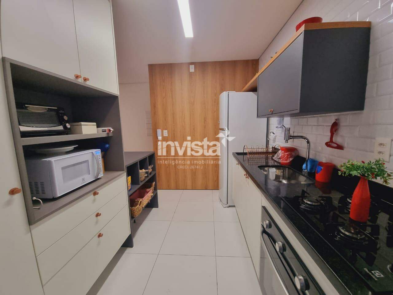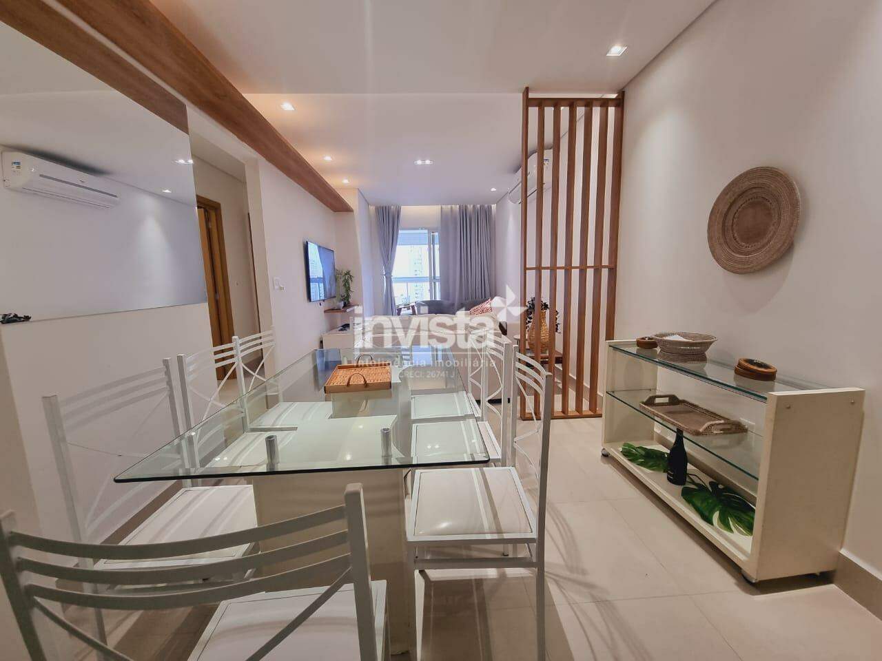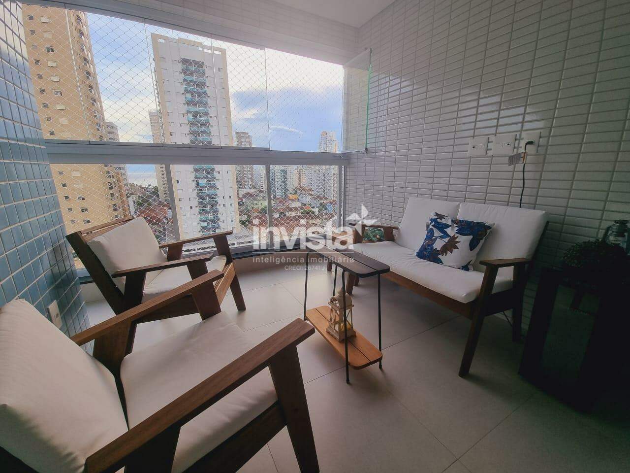 São 3 dormitórios, originalmente 1 suíte, porém o WC de serviço foi revertido para a 2 suíte, WC social, sala para 2 ambientes, varanda com vista para o mar, cozinha com conceito aberto, área de serviço e 2 vagas de garagem demarcadas.
