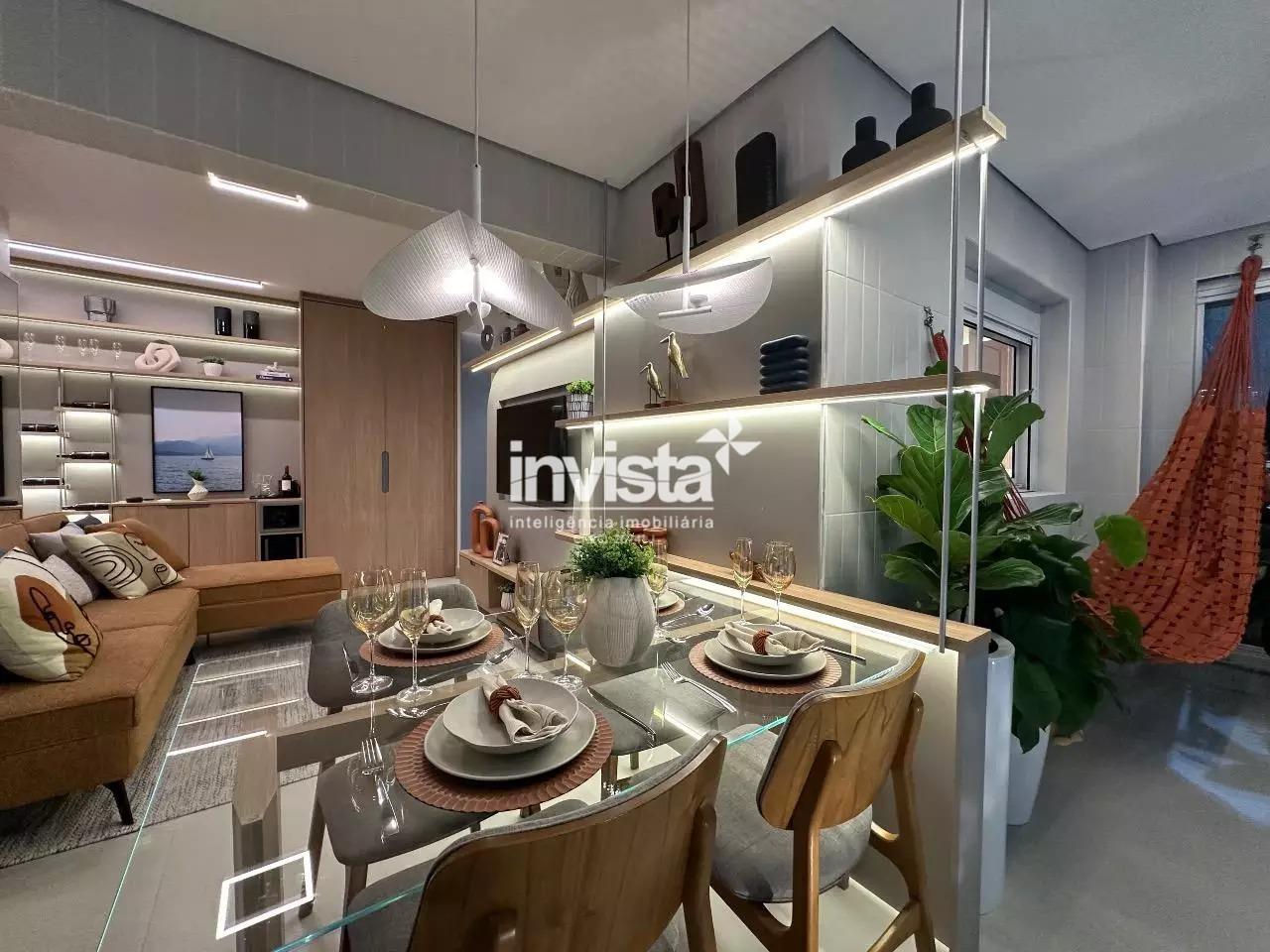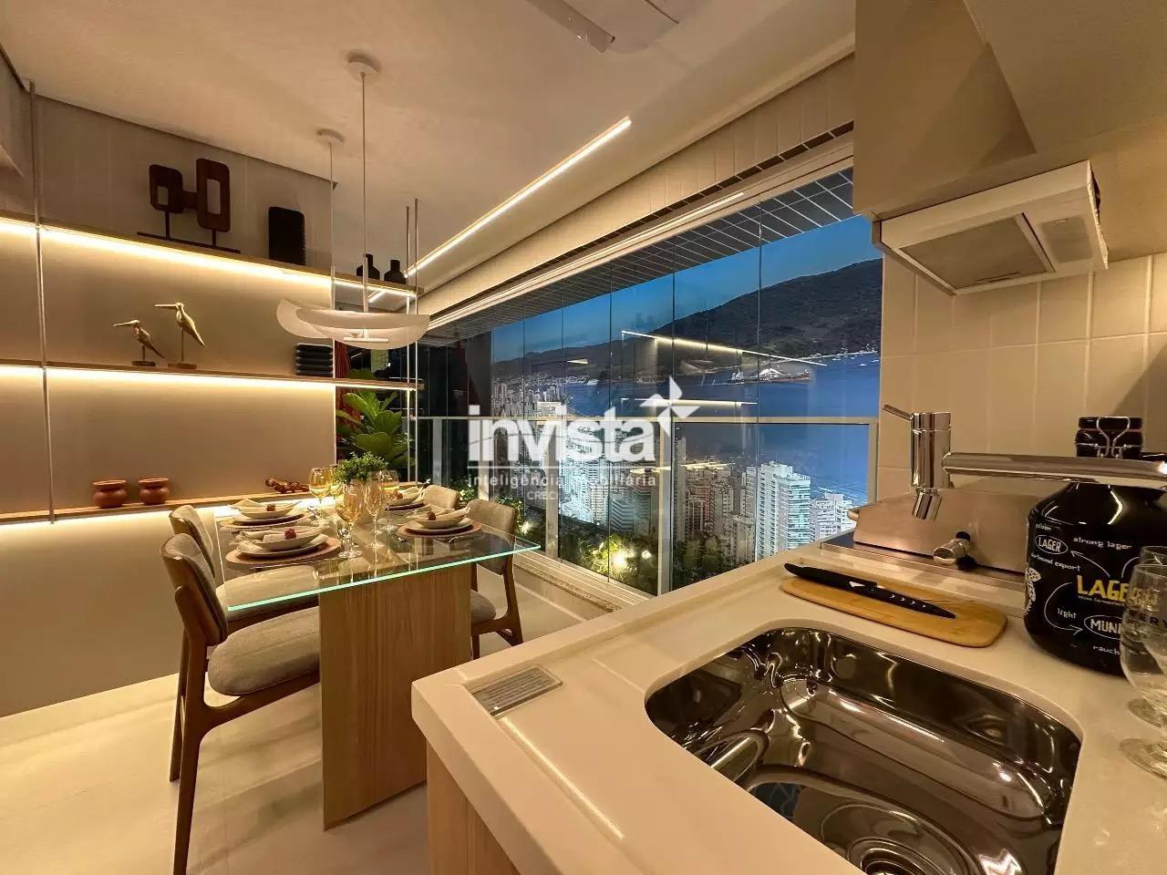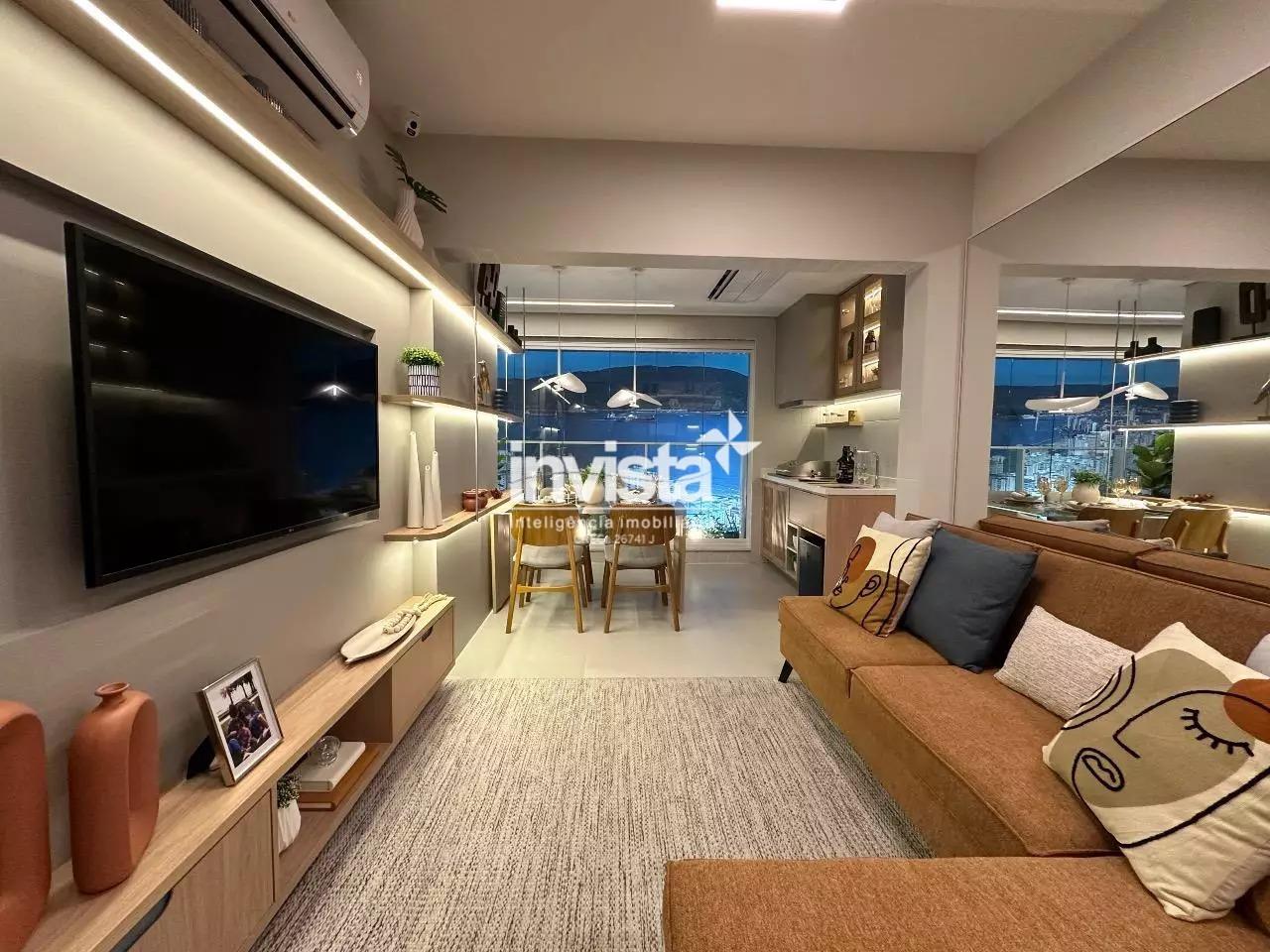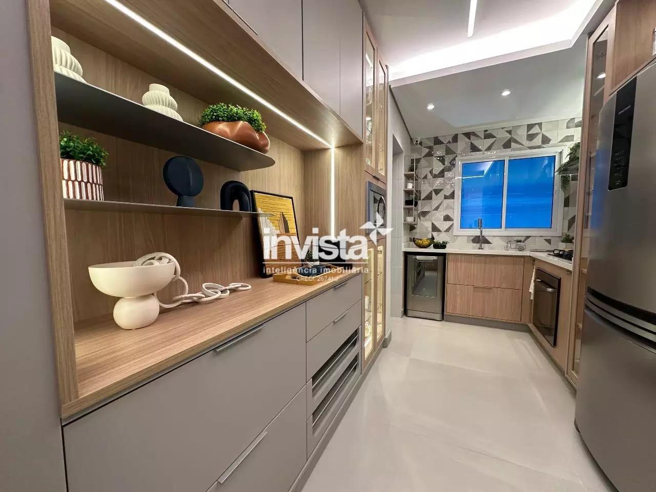 Venda de apartamento residencial no Embaré, Santos. São 96 m² muito bem distribuídos, com 2 dormitórios, ambos suítes, total de 3 banheiros, sala integrada à varanda gourmet e 1 vaga de garagem. Unidade lateral esquerda, com sol da manhã e vista para o mar. Acabamento em porcelanato.