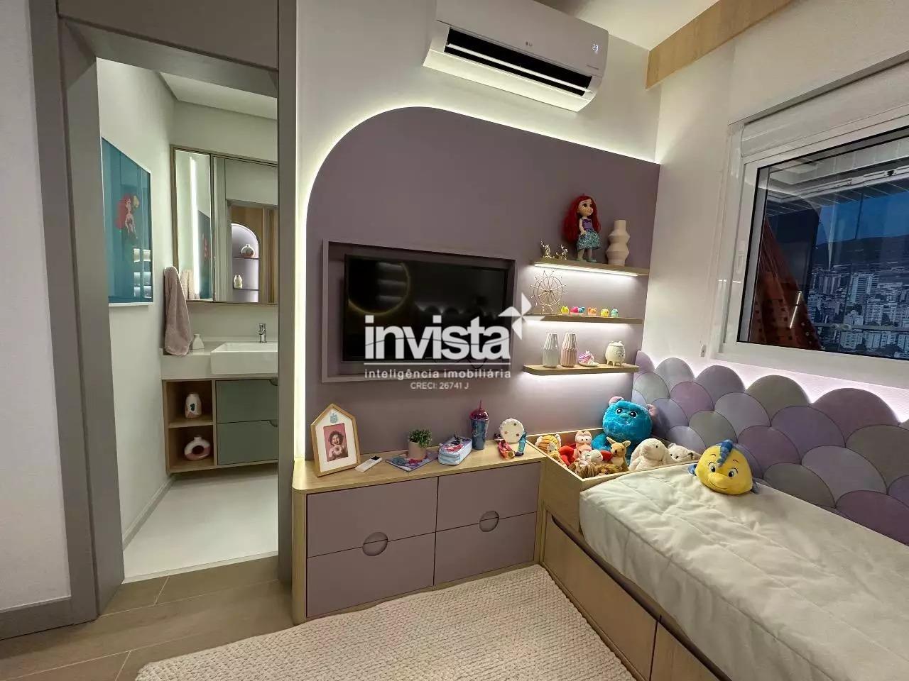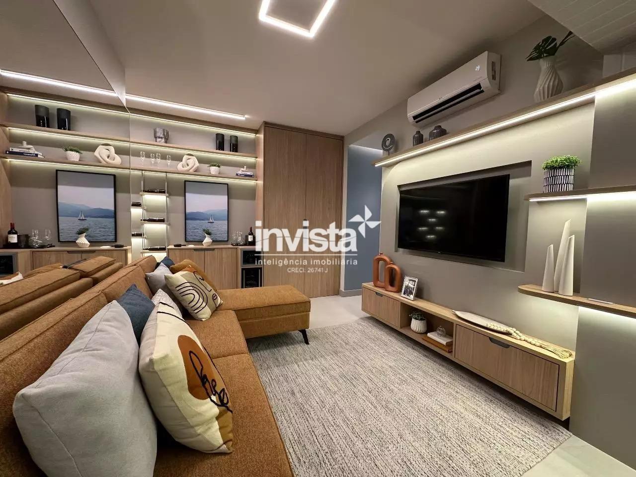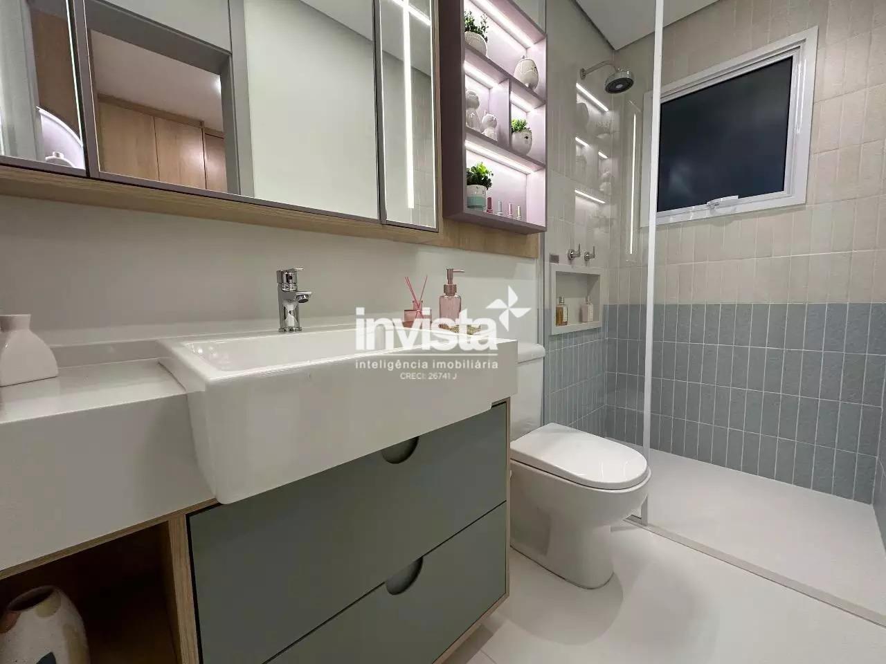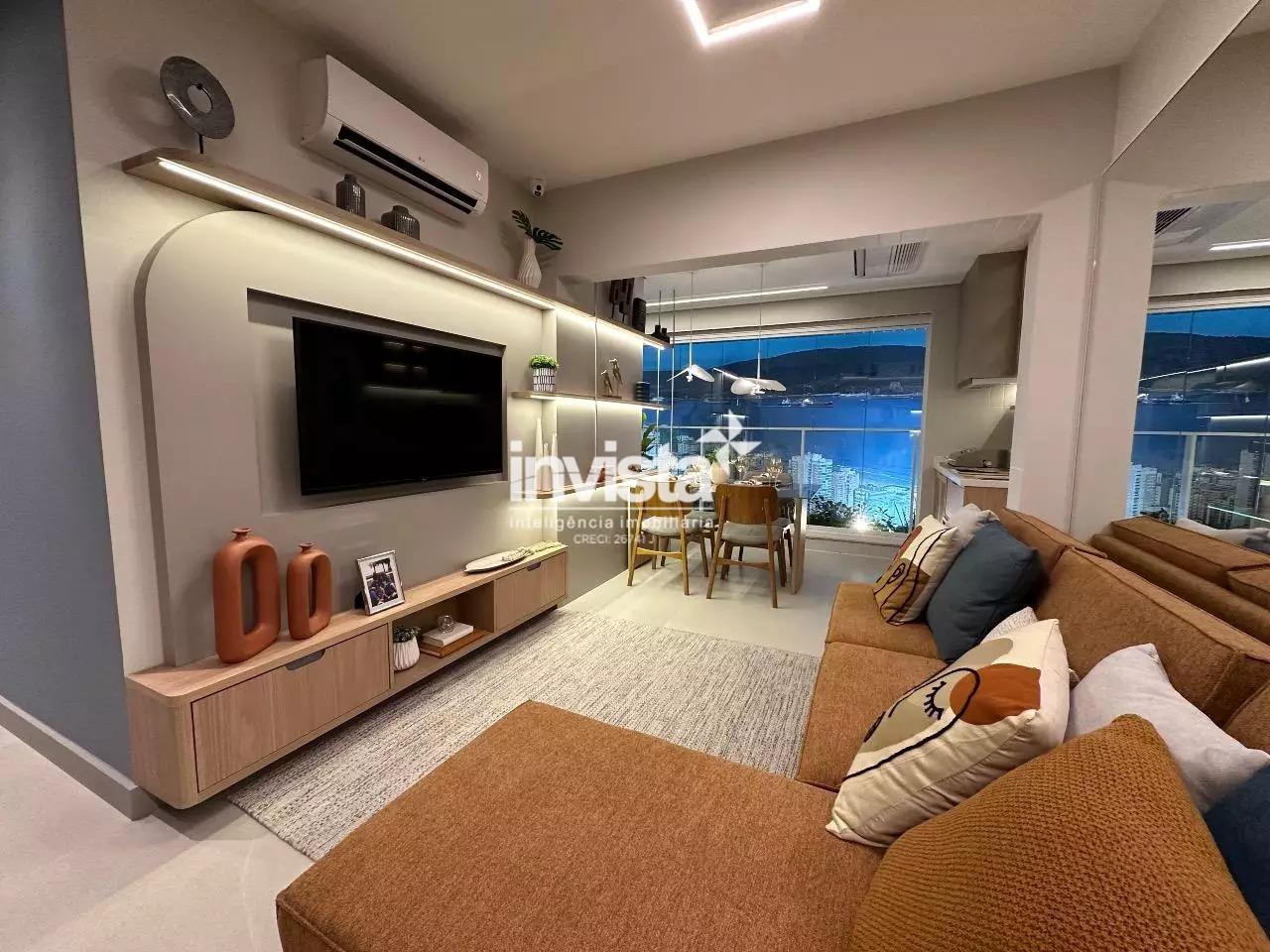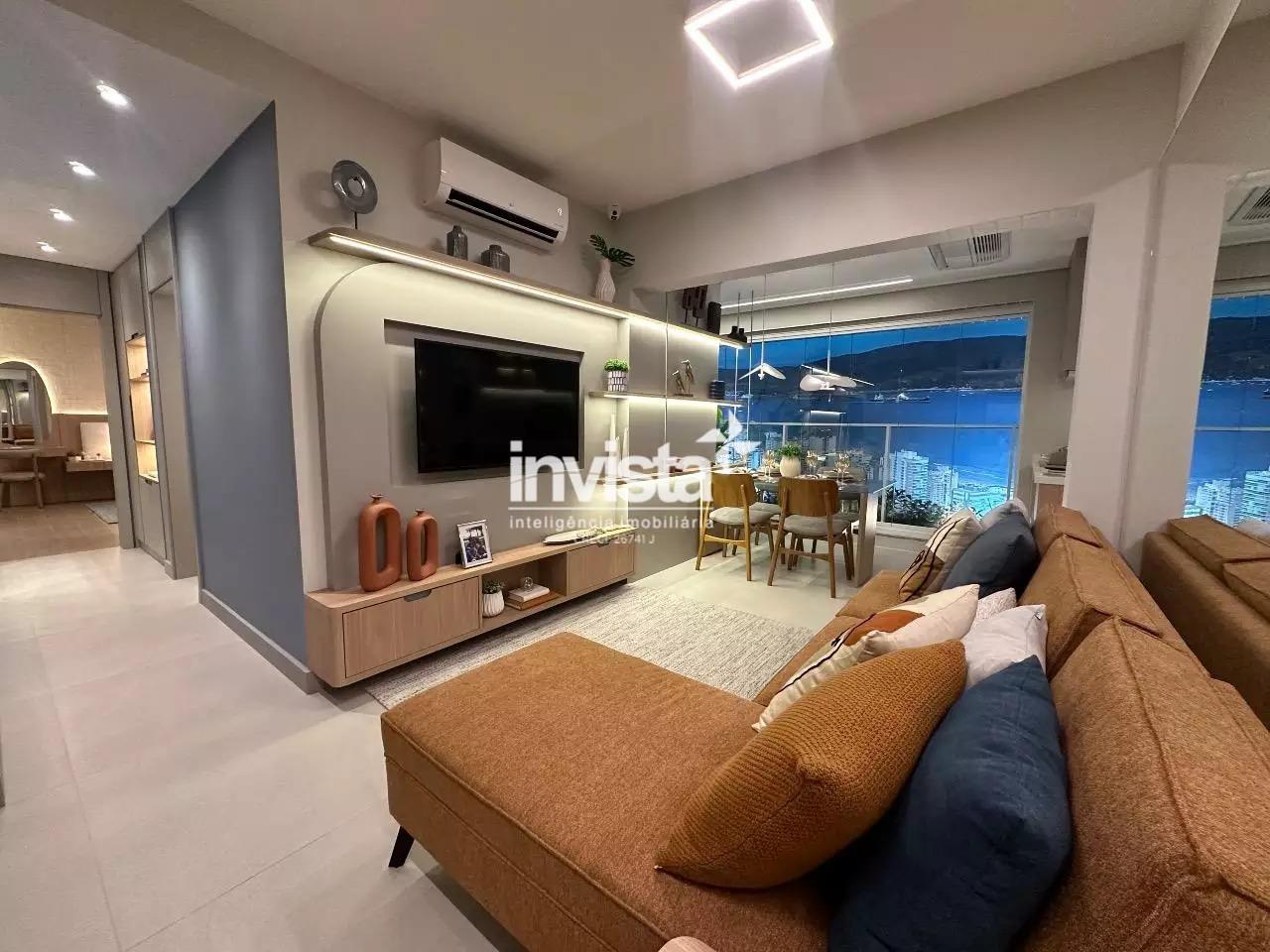 Venda de apartamento residencial no Embaré, Santos. São 96 m² muito bem distribuídos, com 2 dormitórios, ambos suítes, total de 3 banheiros, sala integrada à varanda gourmet e 1 vaga de garagem. Unidade lateral esquerda, com sol da manhã e vista para o mar. Acabamento em porcelanato.