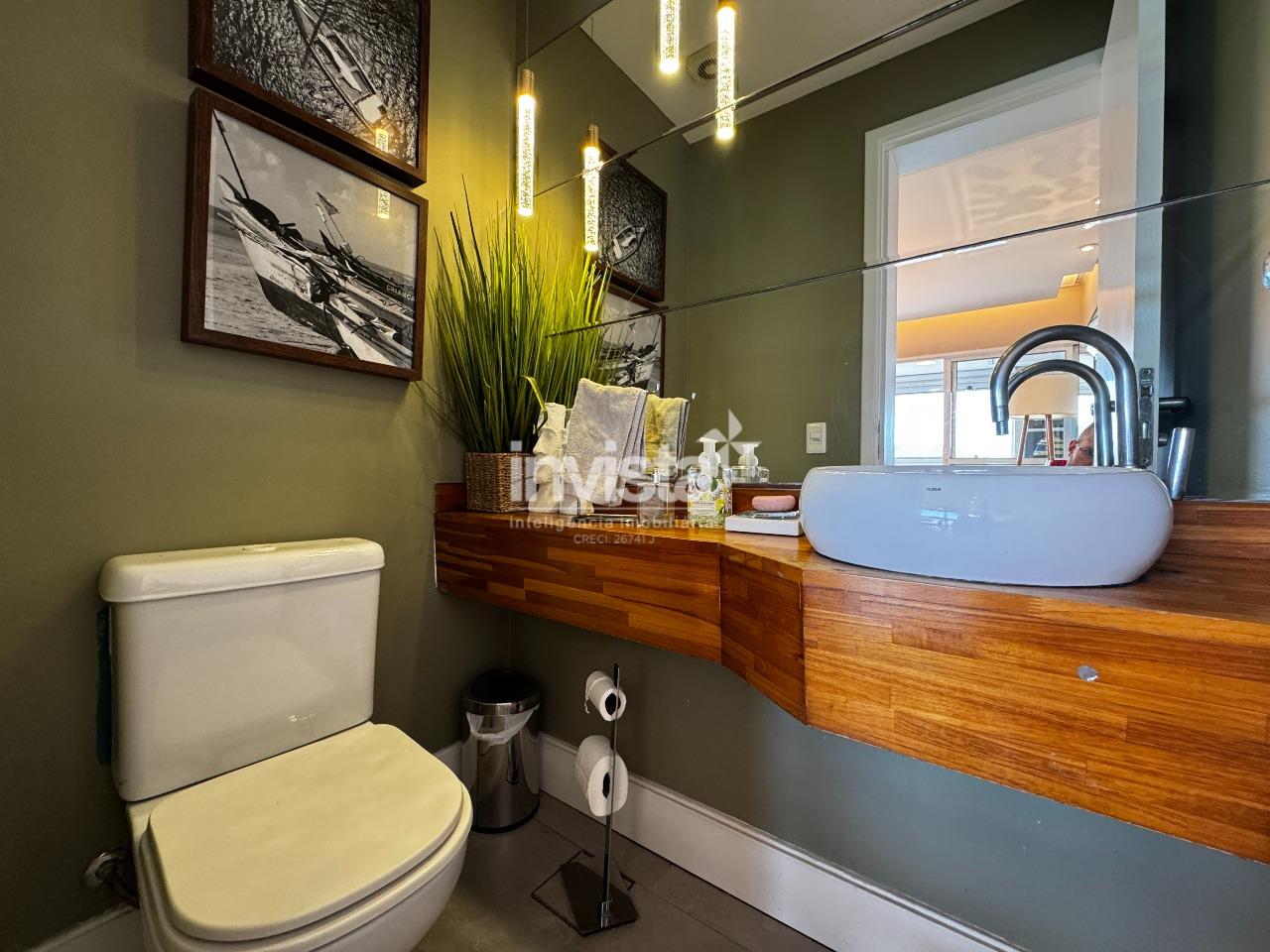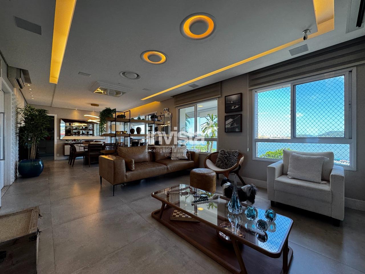 Viver neste apartamento de 189m² é ter um camarote exclusivo para o espetáculo dos transatlânticos que chegam e partem de Santos. Localizado na área mais nobre da Ponta da Praia, este imóvel assinado pela grife Lindemberg & Rossi (2010) oferece o privilégio raro de contemplar tanto o nascer quanto o pôr do sol, banhando os ambientes com luz natural o dia todo.