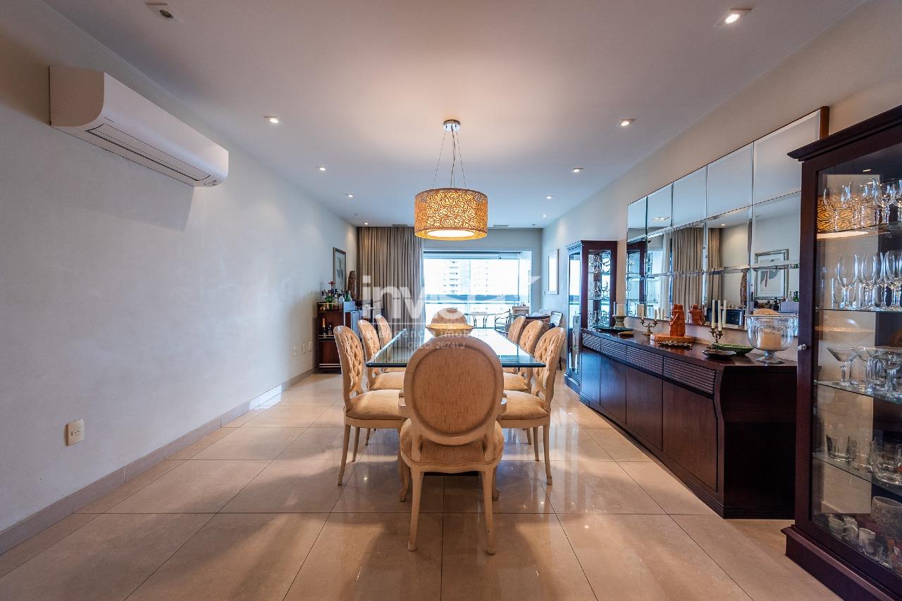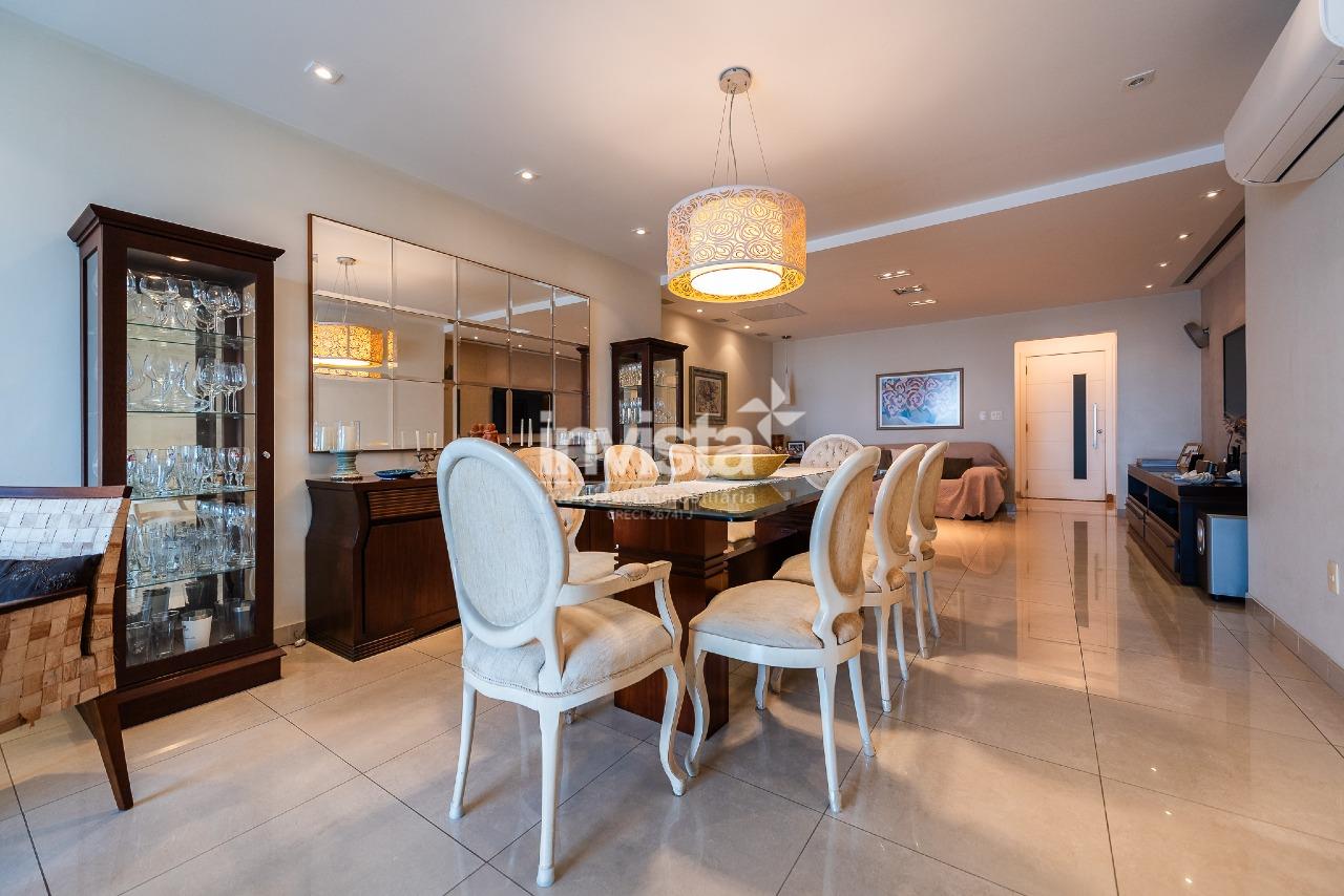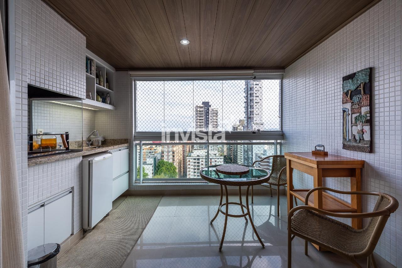 Com 227m² de área útil, distribuídos em uma excelente sala para até 3 ambientes, com lavabo, projeto de iluminação e teto rebaixado em gesso, ideal para recepcionar com conforto e sofisticação. Ao sair do espaço de televisão, você chega nessa varanda incrível: Churrasqueira, mesa, ótimo espaço de convivência, e boa iluminação e ventilação naturais.