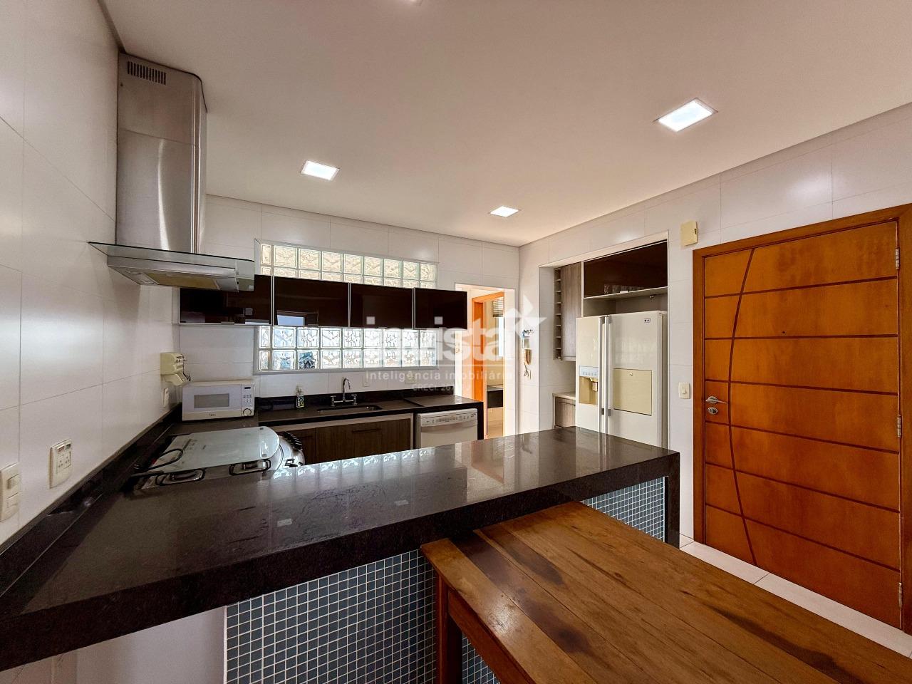 São 3 suítes com armários embutidos e vista totalmente livre, sala para 2 ambientes, lavabo, cozinha integrada à sala, ampla área de serviço e suíte de empregada.