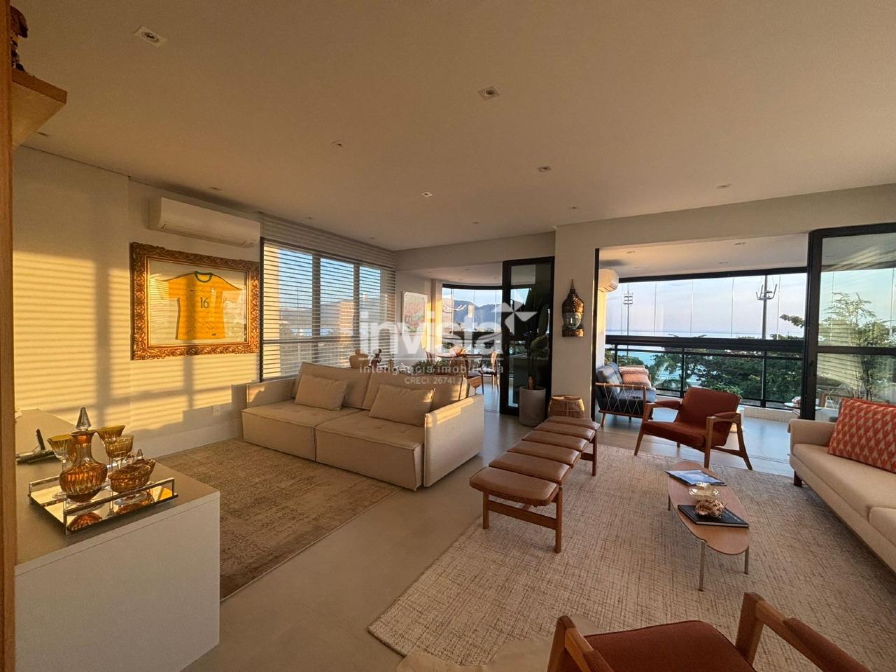 Maravilhoso apartamento com –vista panorâmica para o mar–, finamente mobiliado e decorado, localizado em um dos trechos mais nobres da orla de Santos.