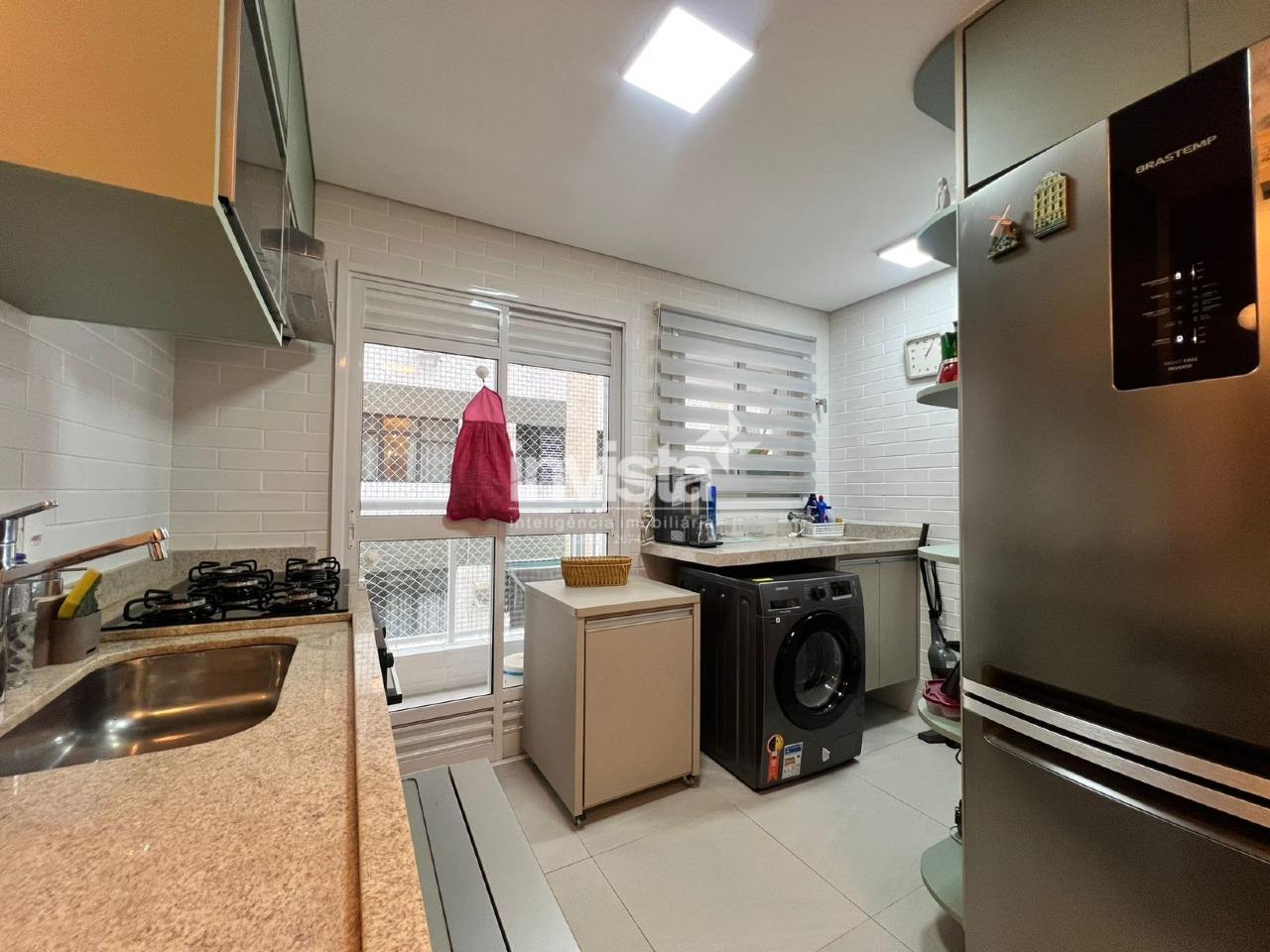 São 2 suítes, sendo uma delas com varanda, lavabo, sala ampla para dois ambientes, cozinha americana e área de serviço.