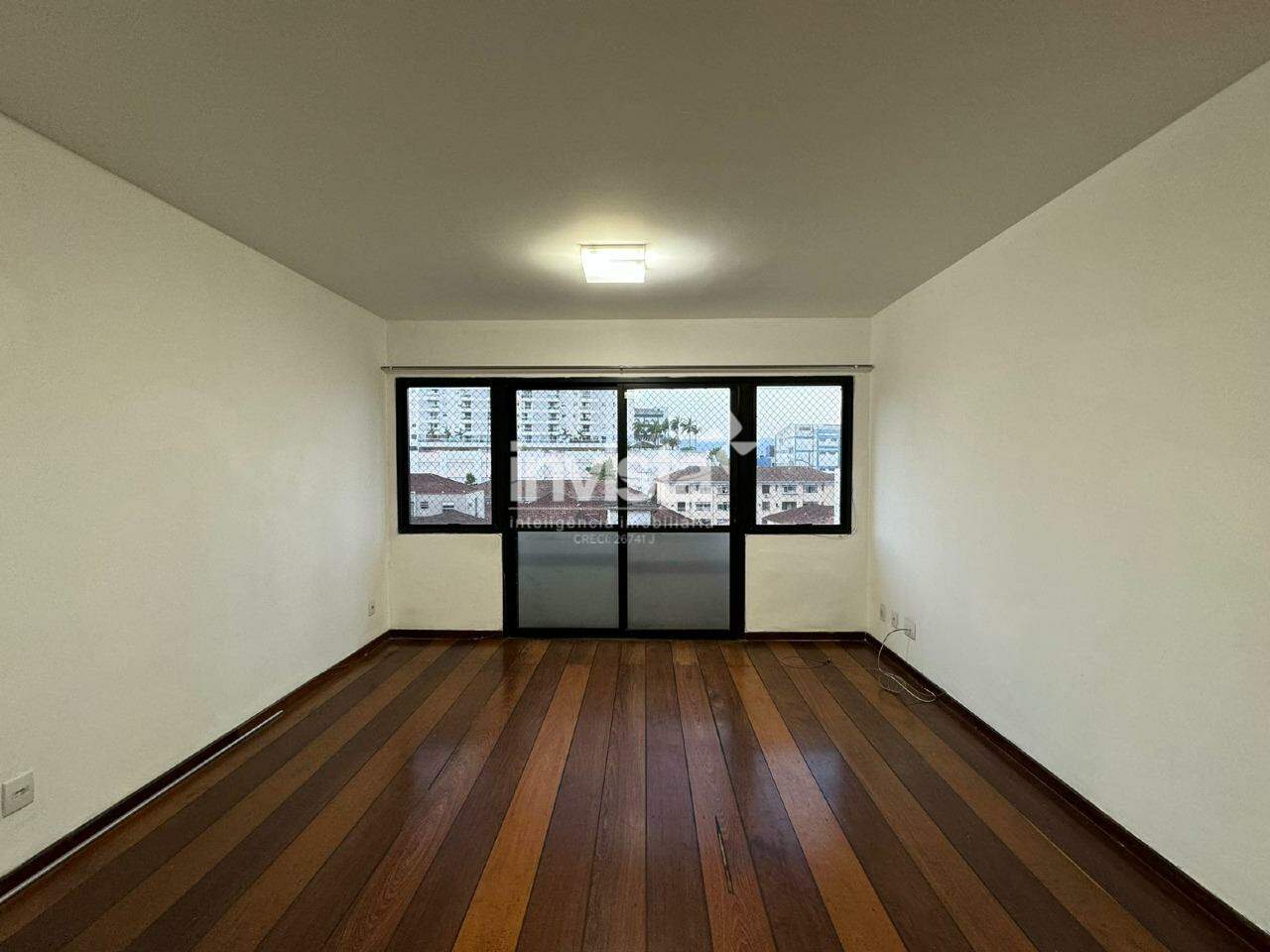 São 117m² de área útil, com uma sala ampla para dois ambientes, pé-direito alto, piso em assoalho de madeira e uma grande janela que garante ainda mais luminosidade. Na área íntima, há três dormitórios, sendo uma suíte, todos com armários e também piso em madeira. O banheiro social conta com box de vidro.