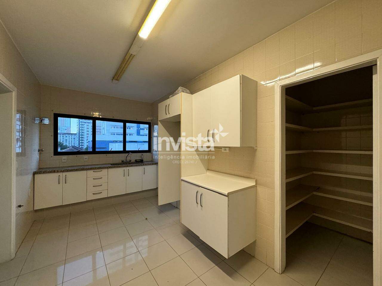 A cozinha, espaçosa e revestida em porcelanato, possui armários planejados e uma excelente distribuição para os eletrodomésticos, além de despensa. A área de serviço tem o tamanho ideal para o dia a dia e conta com uma dependência completa, incluindo um quarto com armários e um banheiro.
