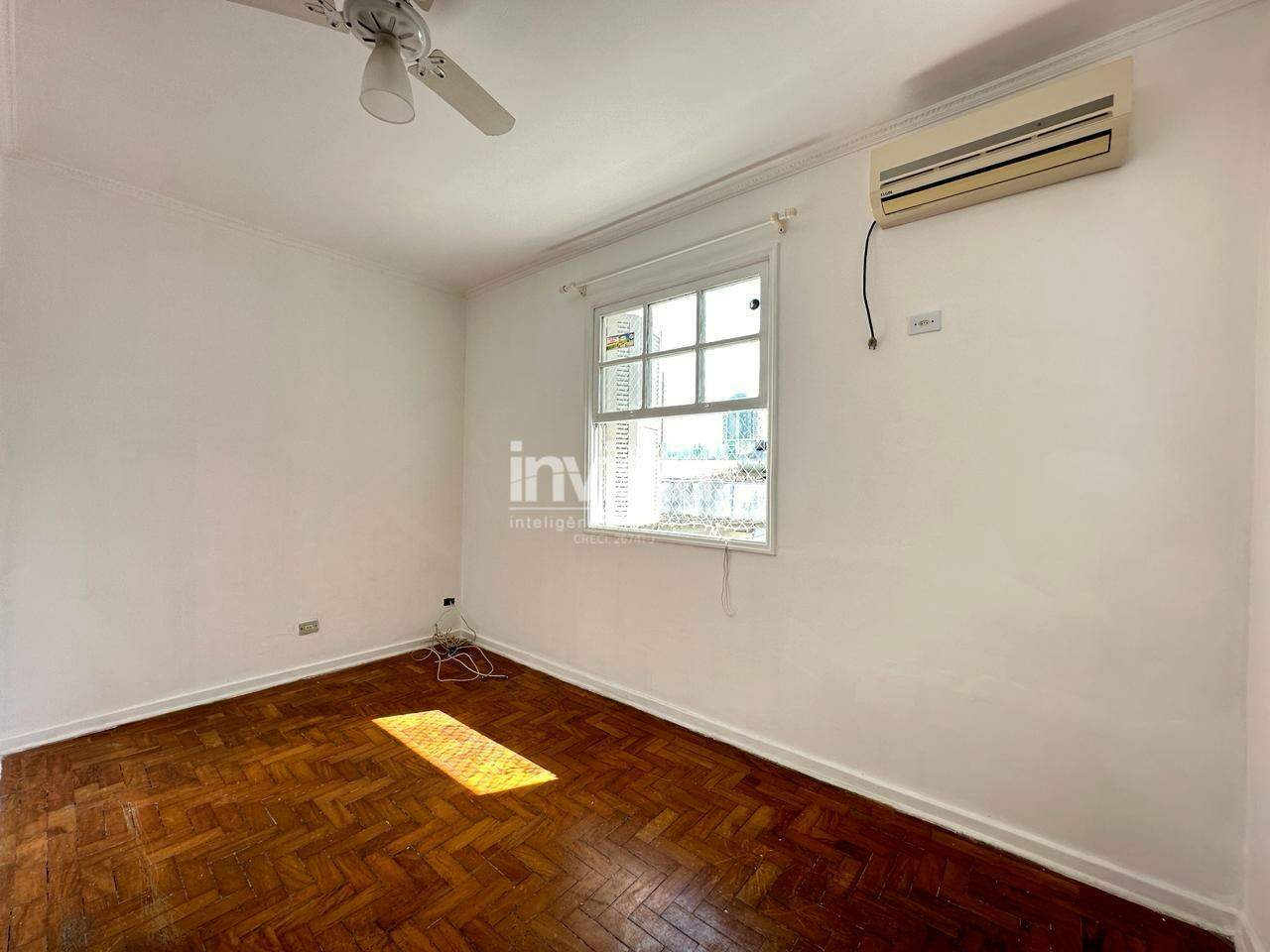 Além disso, o imóvel possui 2 banheiros (social e de serviço), área de serviço espaçosa, e mais um ar-condicionado em um dos quartos. Todo o piso é em porcelanato novo, oferecendo um visual elegante e de fácil manutenção.