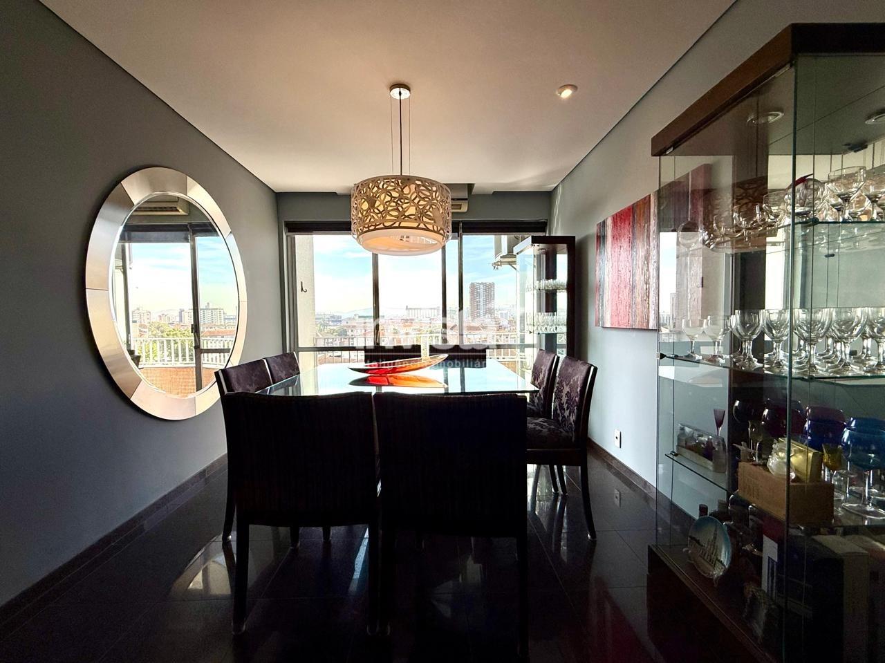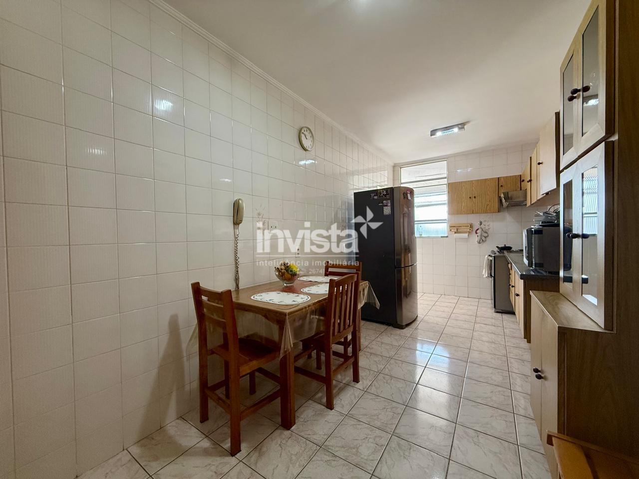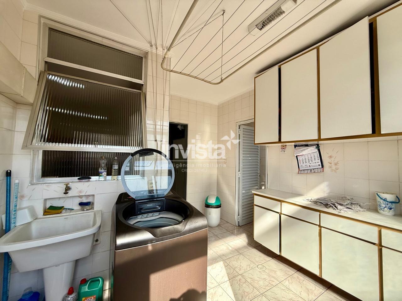 Sala de estar e jantar com varanda de frente, cozinha ampla e quadrada, com dependência completa de serviço, e 3 dormitórios, sendo 1 suíte.