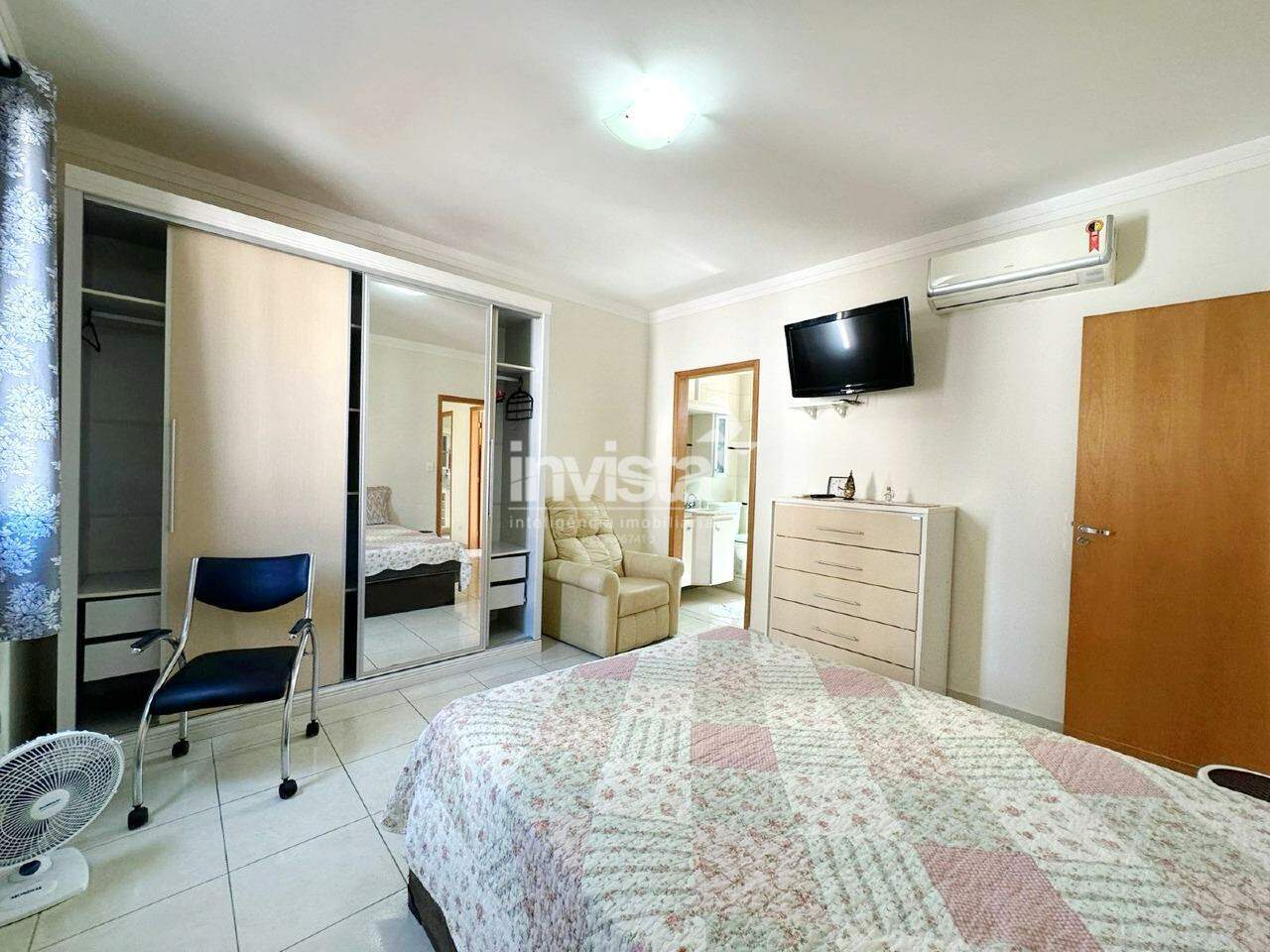Apartamento amplo e confortável, em uma das melhores ruas de Santos, com 3 dormitórios, varanda com churrasqueira em prédio moderno.