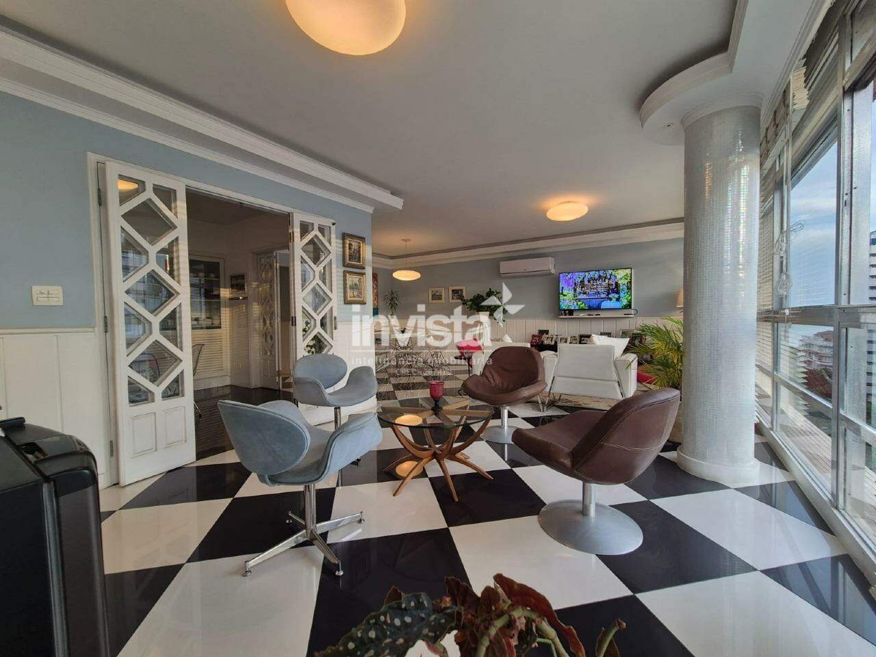 * Sala ampla, com janelas panorâmicas ou varanda envidraçada que valorizam a vista para o mar e a entrada de luz natural