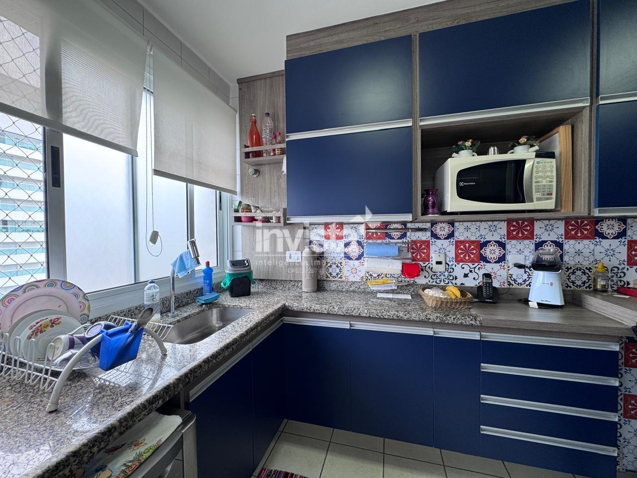 São 2 vagas de garagem e portaria 24 horas em prédio muito bem localizado, em rua residencial tranquila, a poucos passos da praia e de toda a conveniência do Boqueirão.