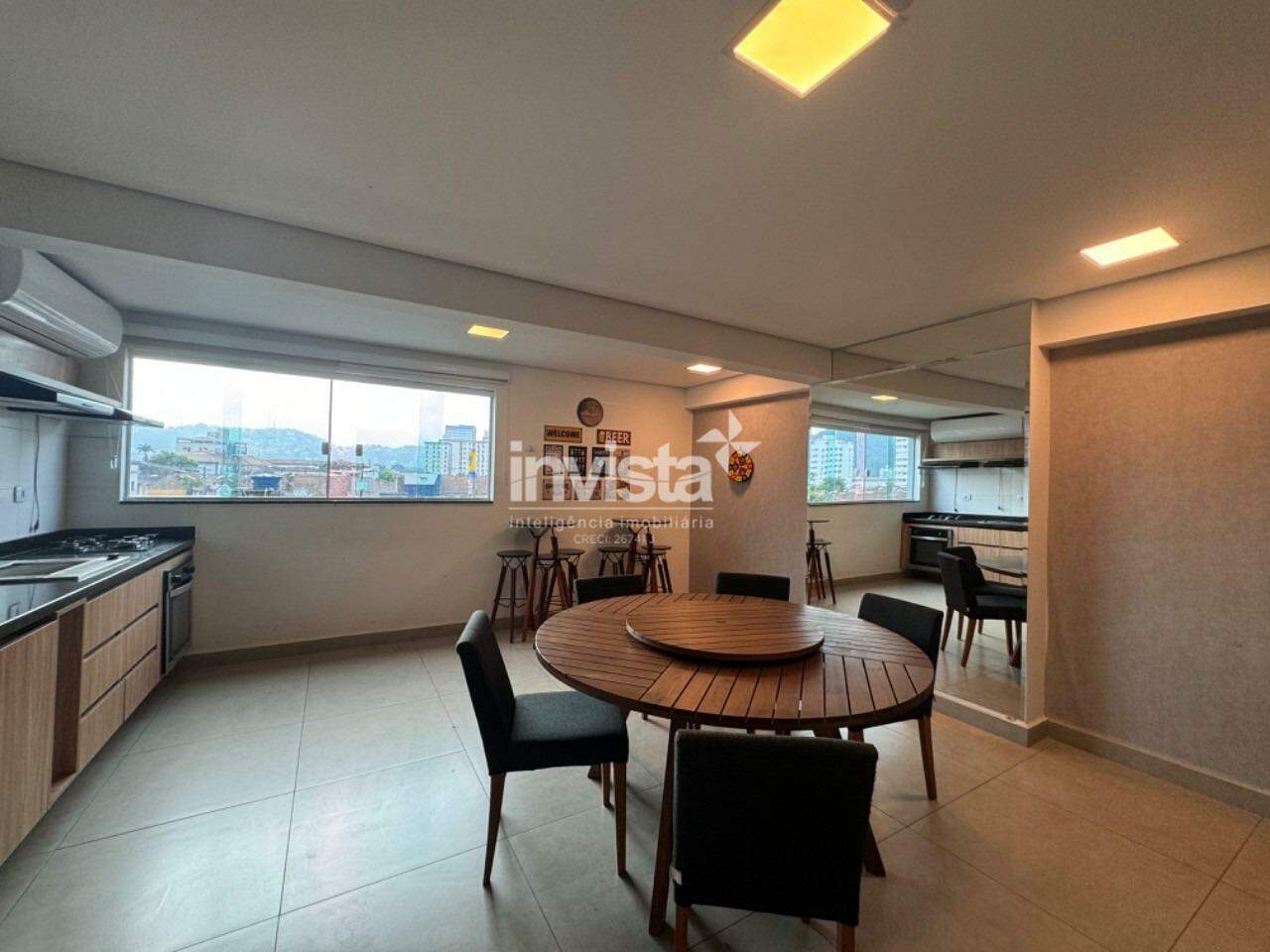 2 quartos, sendo 1 suíte, cozinha americana, sala com 2 ambientes.