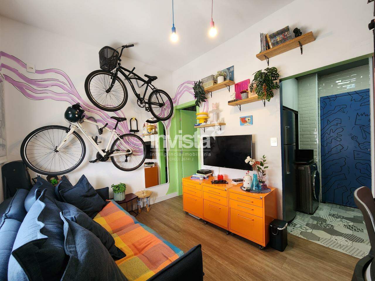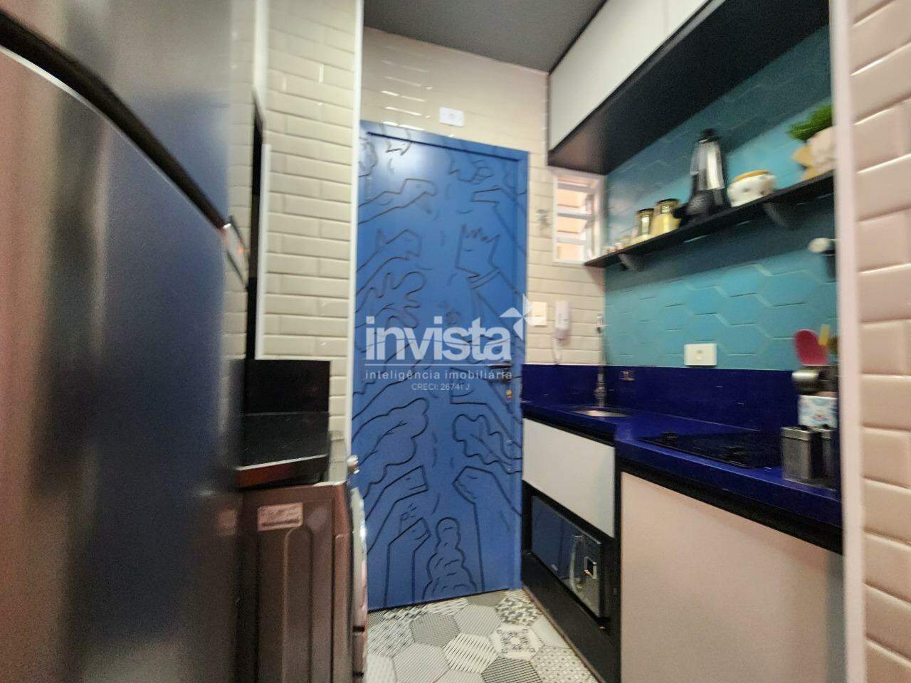 Kit net porteira fechada, na quadra da praia do Embaré. Prédio com portaria e manobrista 24 horas.