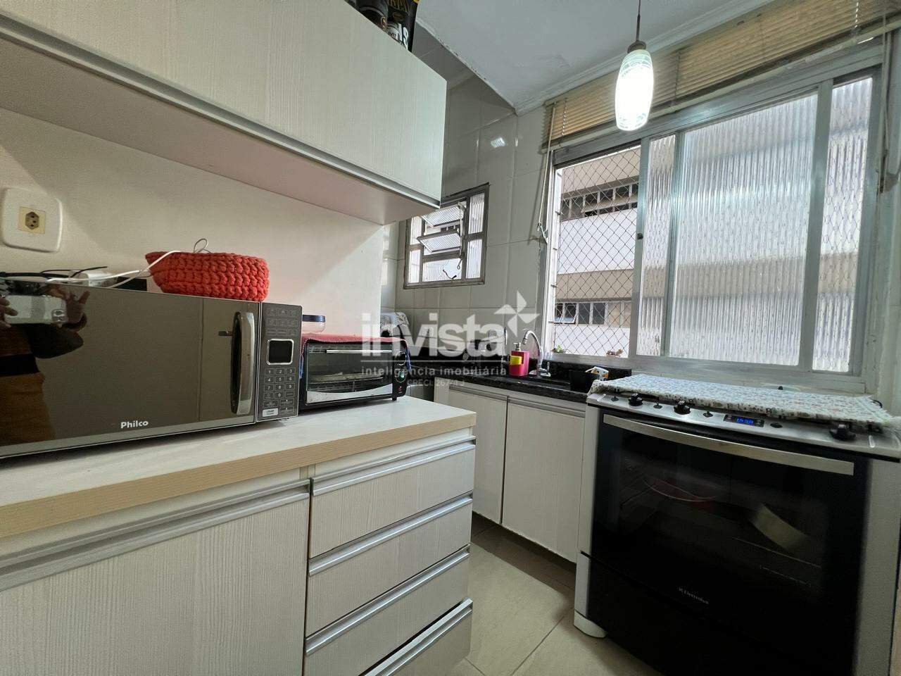 A comodidade se estende à garagem, que conta com serviço de manobrista, facilitando o acesso ao veículo. A localização é simplesmente excelente: a apenas meia quadra da praia, e próxima aos Shoppings e ao comércio variado do Gonzaga, um dos bairros mais desejados de Santos.