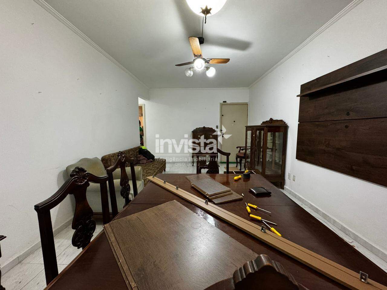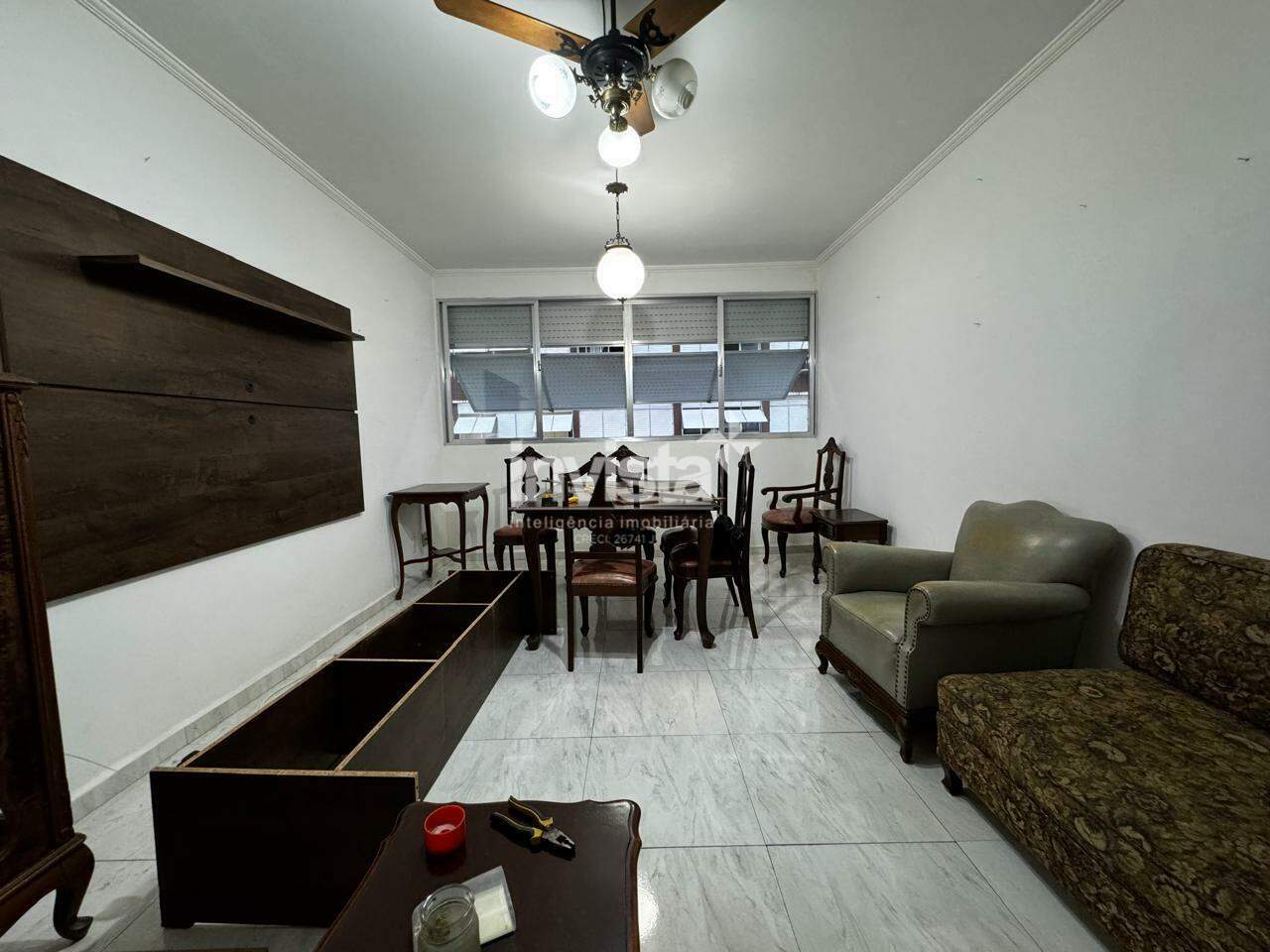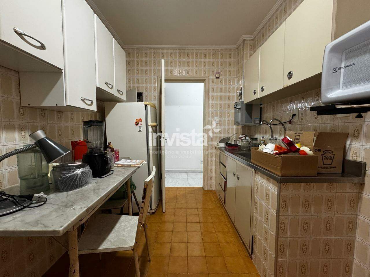 Sala ampla para dois ambientes, bem iluminada, e uma cozinha completa com entrada de serviço, lavanderia e dependência completa. Além disso, o imóvel possui dois grandes quartos e um banheiro espaçoso.