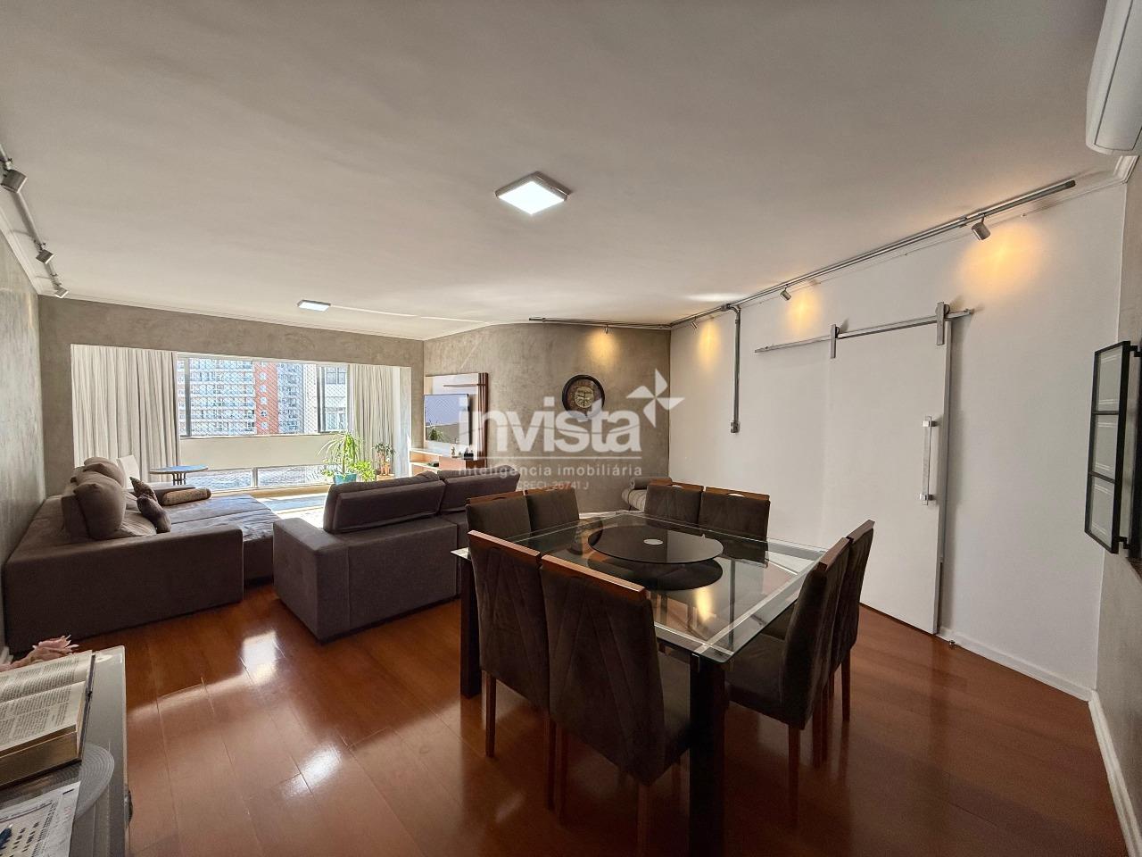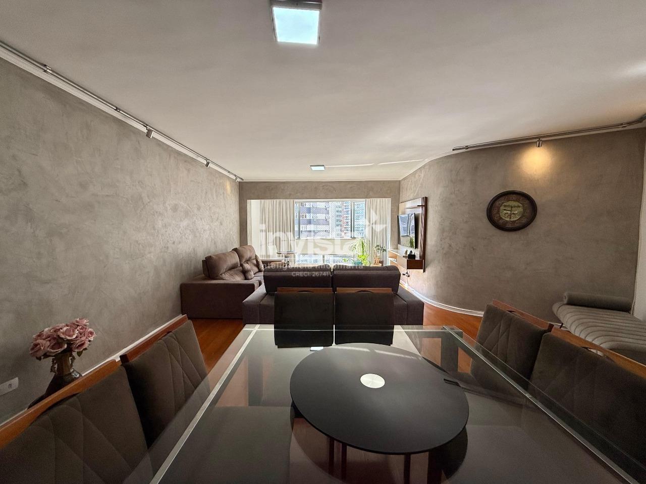 Amplo apartamento no coração do Gonzaga, em localização privilegiada e a poucos metros da praia. São 155 m² de área útil, este imóvel oferece uma sala espaçosa para dois ambientes, bem iluminada e com vista livre, ideal para receber amigos e familiares.
