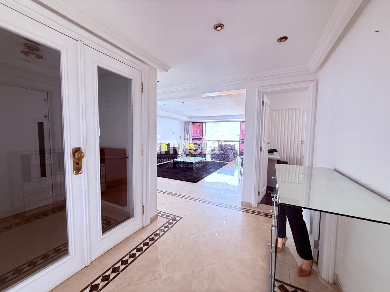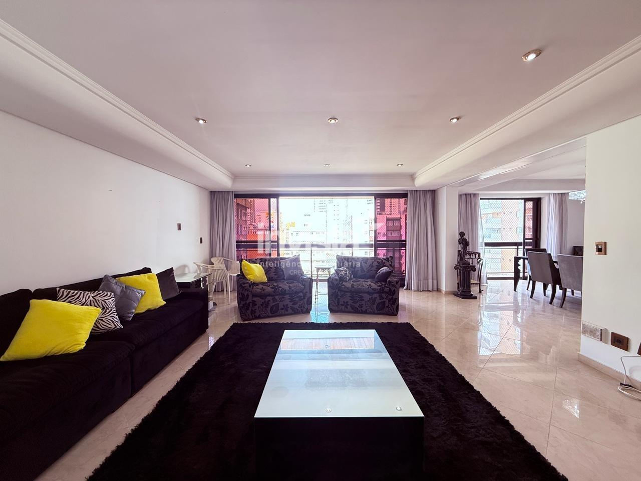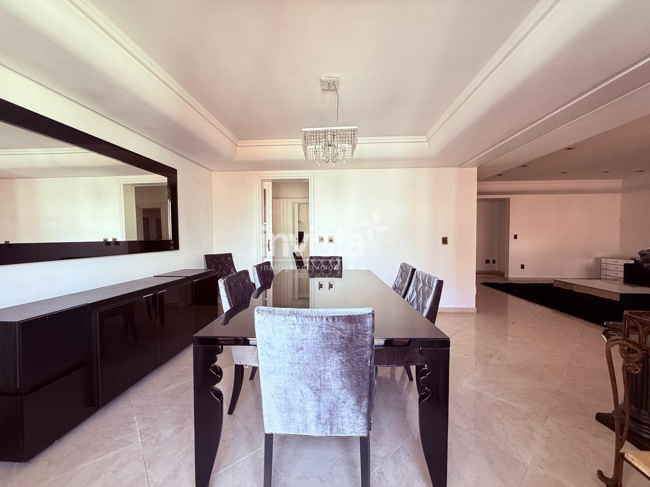 Possui 4 suítes, sendo uma com closet, além de salas de estar, jantar e TV bem distribuídas. A cozinha é ampla e quadrada, com dependência completa de serviço.