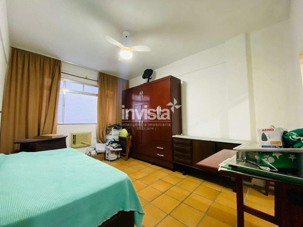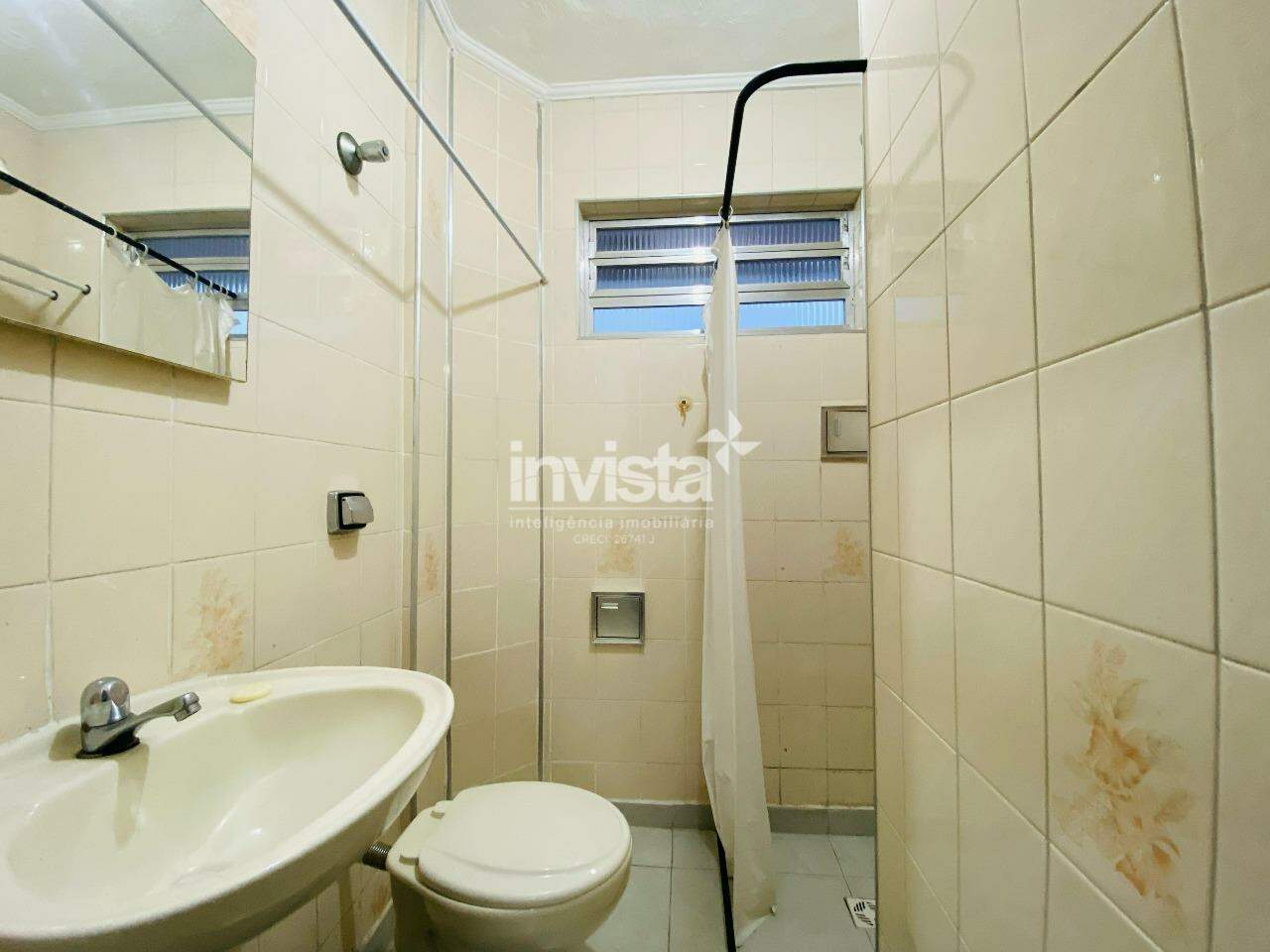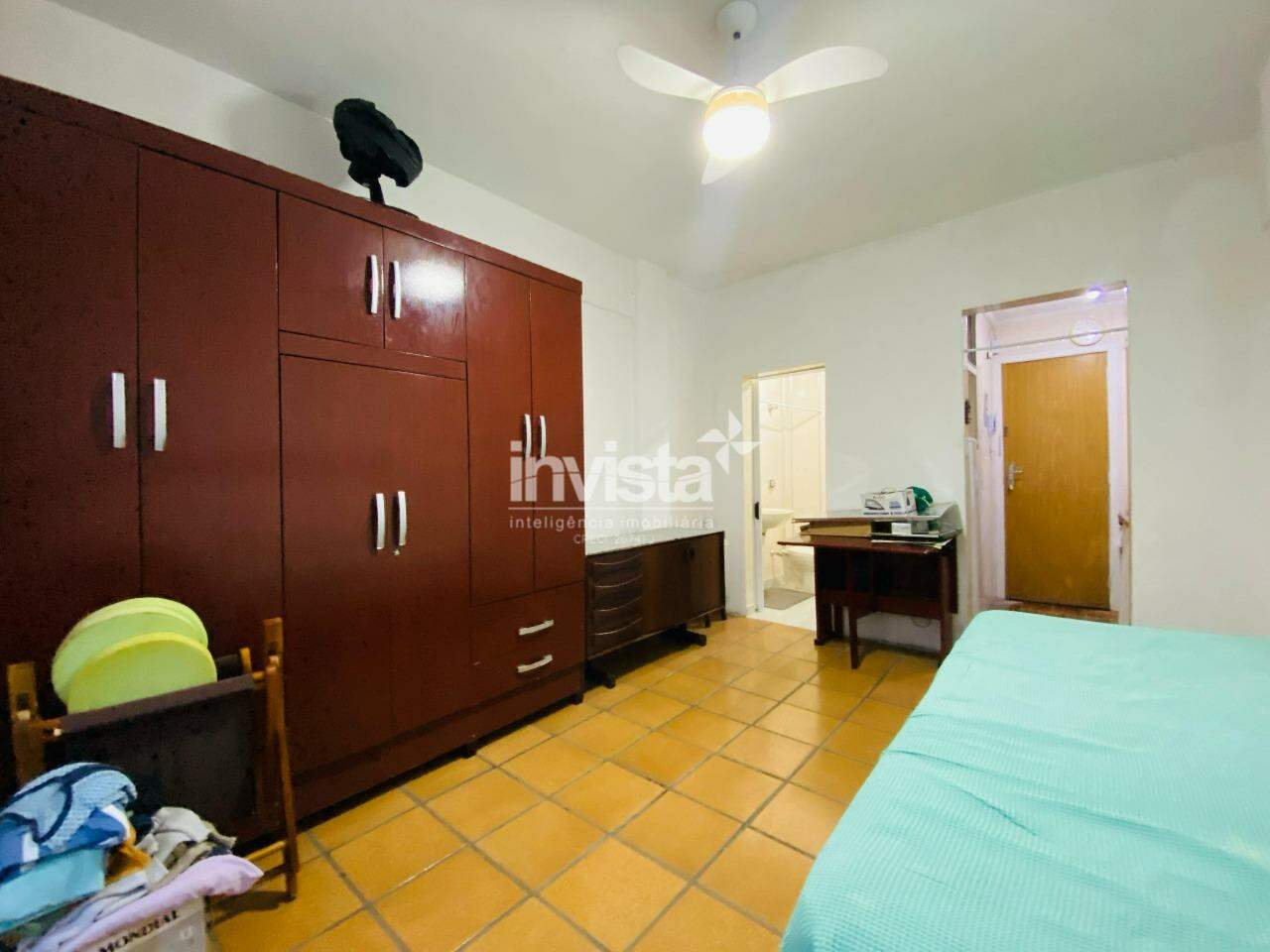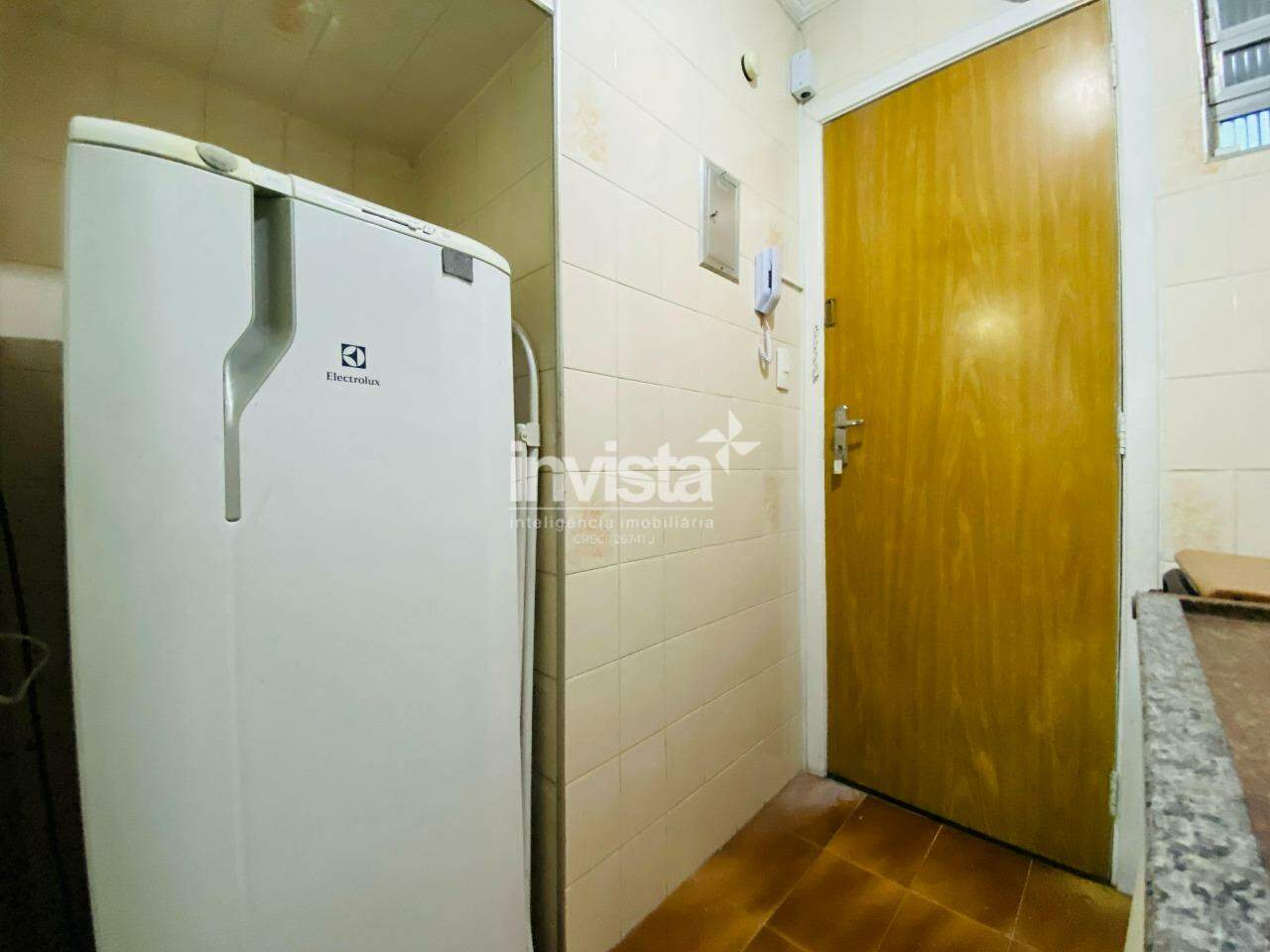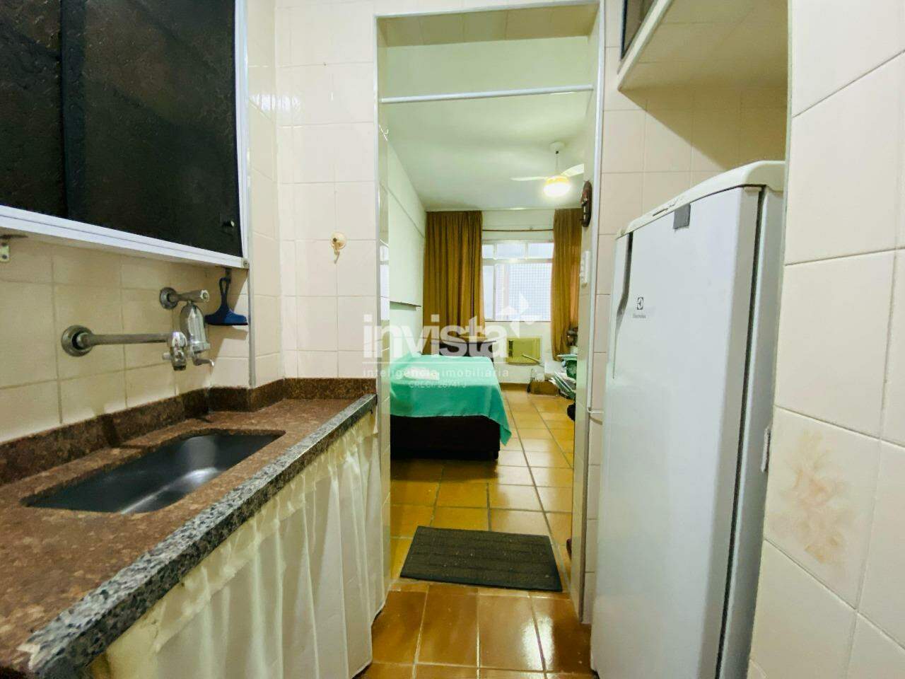 Essa kitnet está situada em um prédio de frente para o mar, no José Menino, pertinho do Canal 1.