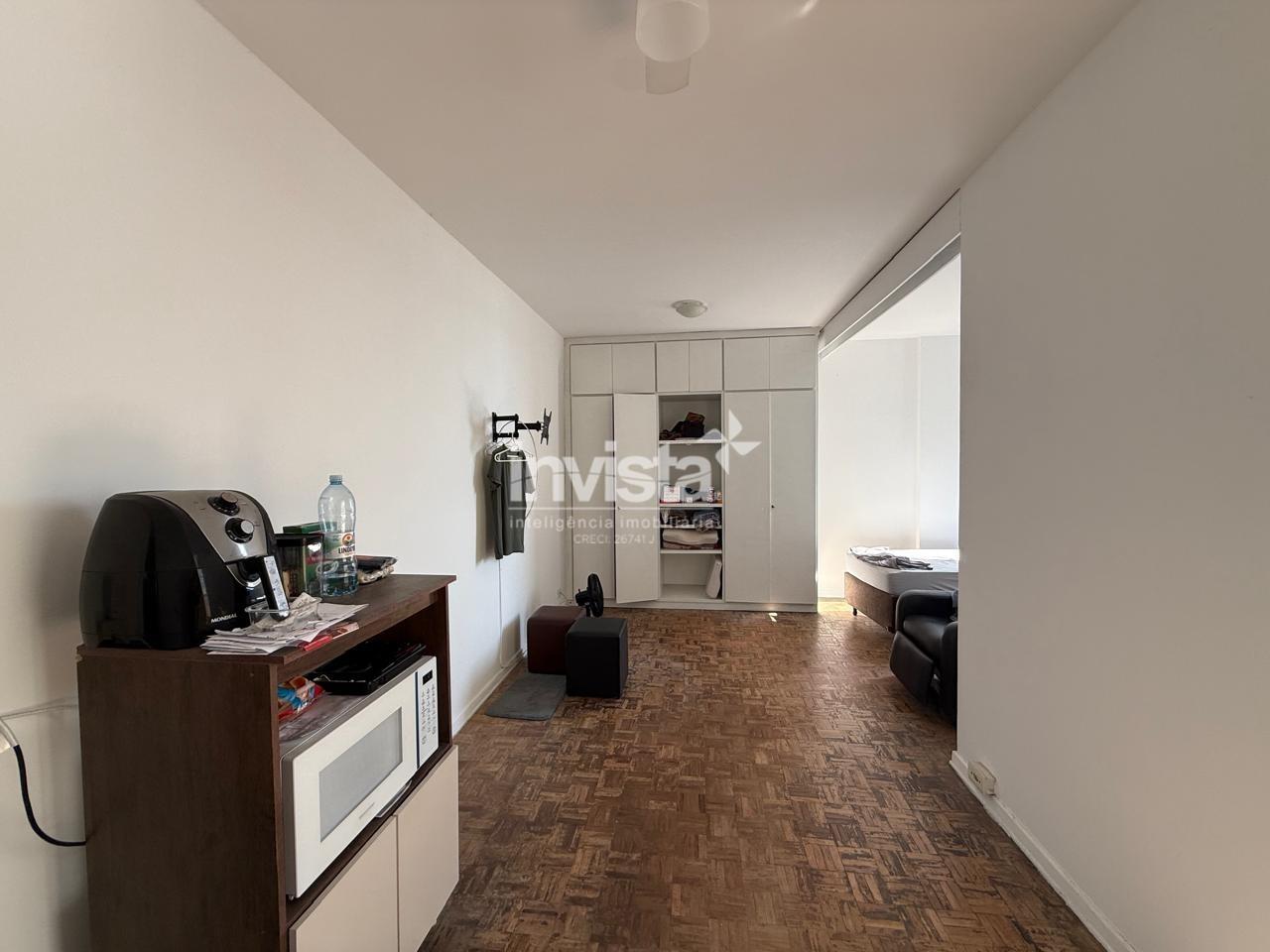 Apartamento com vista mar, composto por sala de estar e jantar, cozinha, banheiro social e 1 dormitório amplo, atualmente integrado, com possibilidade de fechamento em drywall conforme necessidade.