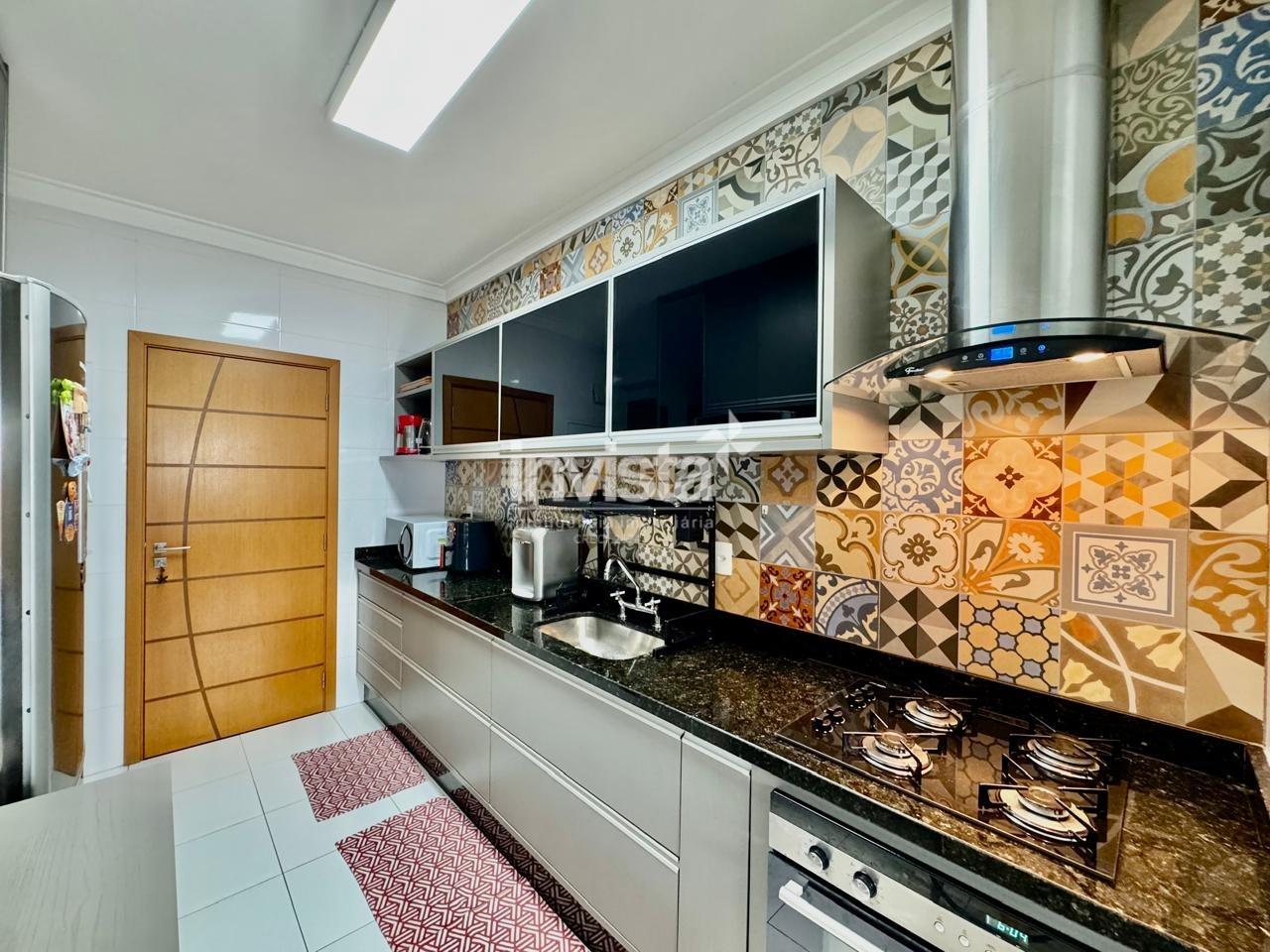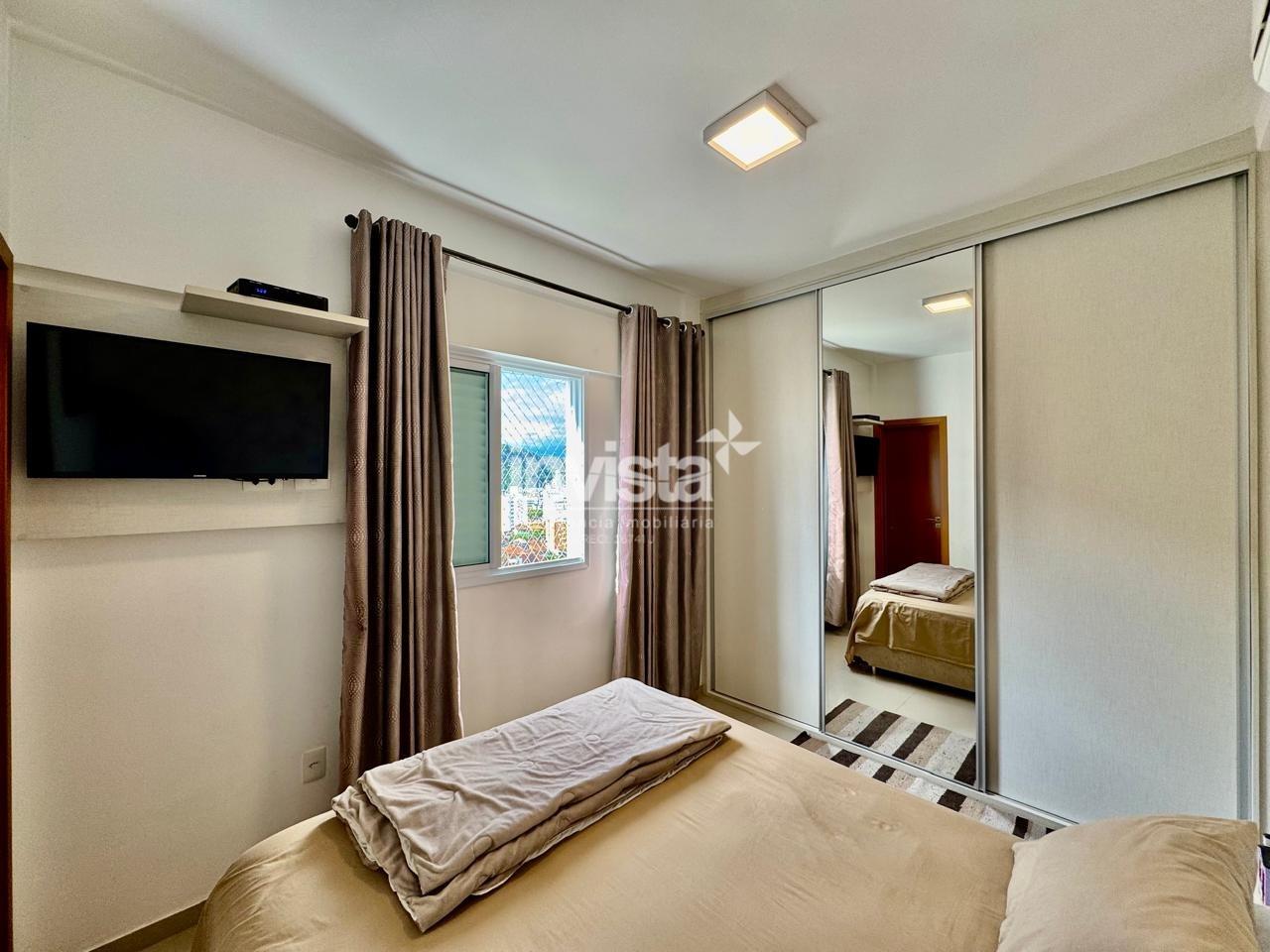 O apartamento fica em andar alto, com vista livre, conta com três dormitórios, sendo uma suíte, um quarto com sacada e vista mar, ampla sala para dois ambientes com sacada frontal, cozinha espaçosa, área de serviço e banheiro de serviço. Possui planejados em todos os ambientes e ar condicionado split na sala e dormitórios, possui duas vagas de garagem demarcadas.