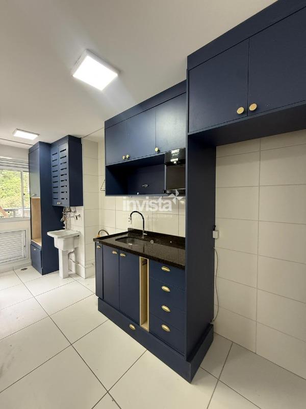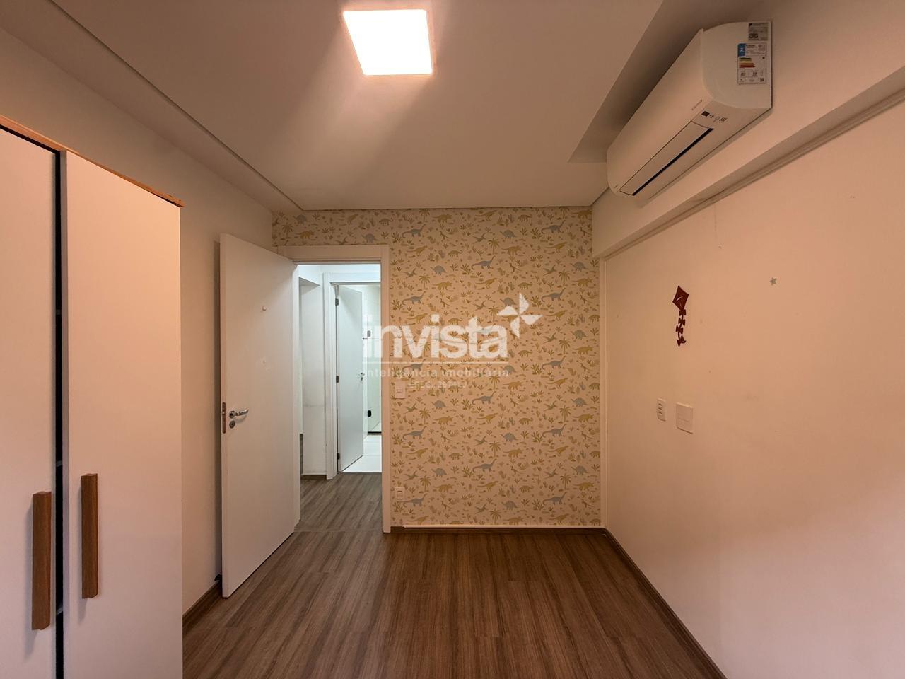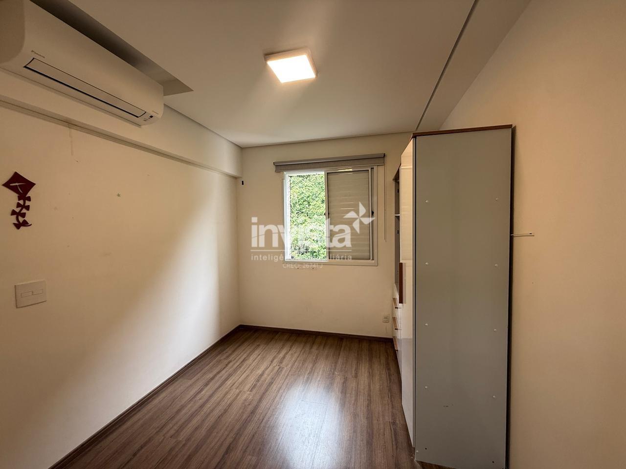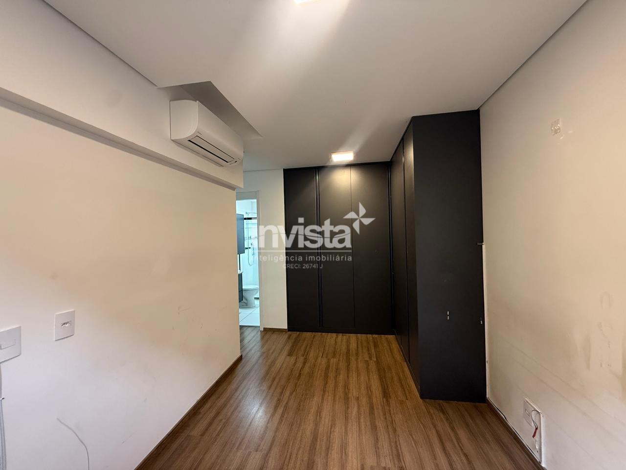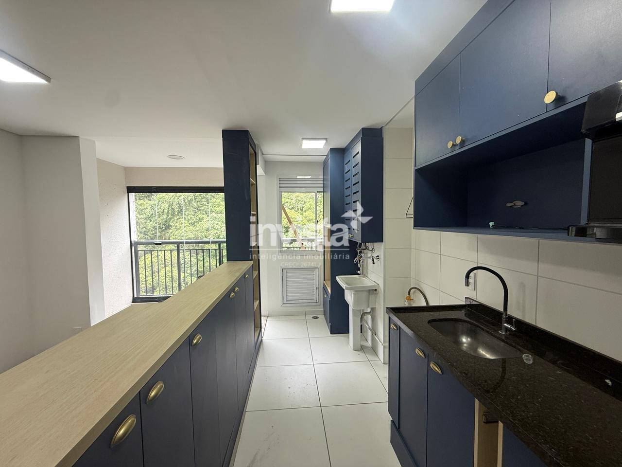 A cozinha é americana e já equipada com móveis planejados. O quarto principal possui guarda-roupa embutido e há ar-condicionado em todos os ambientes.