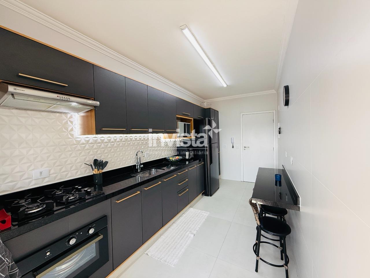 São 3 dormitórios (sendo 2 suítes), lavabo e banheiro social, sala ampla para 2 ambientes, integrada à varanda, cozinha planejada e área de serviço funcional. 2 vagas de garagem demarcadas