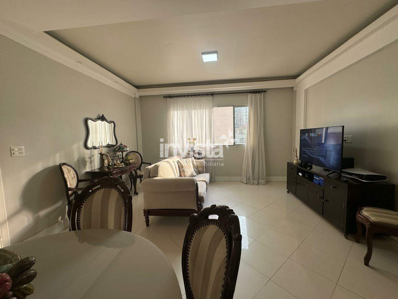 – Sala ampla para 02 ambientes com pisos em porcelanato e teto de gesso com iluminação.