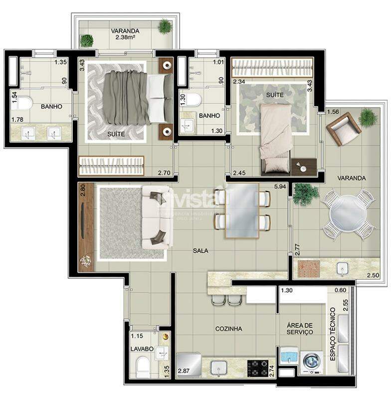 – 2 suítes, com 82 m²
