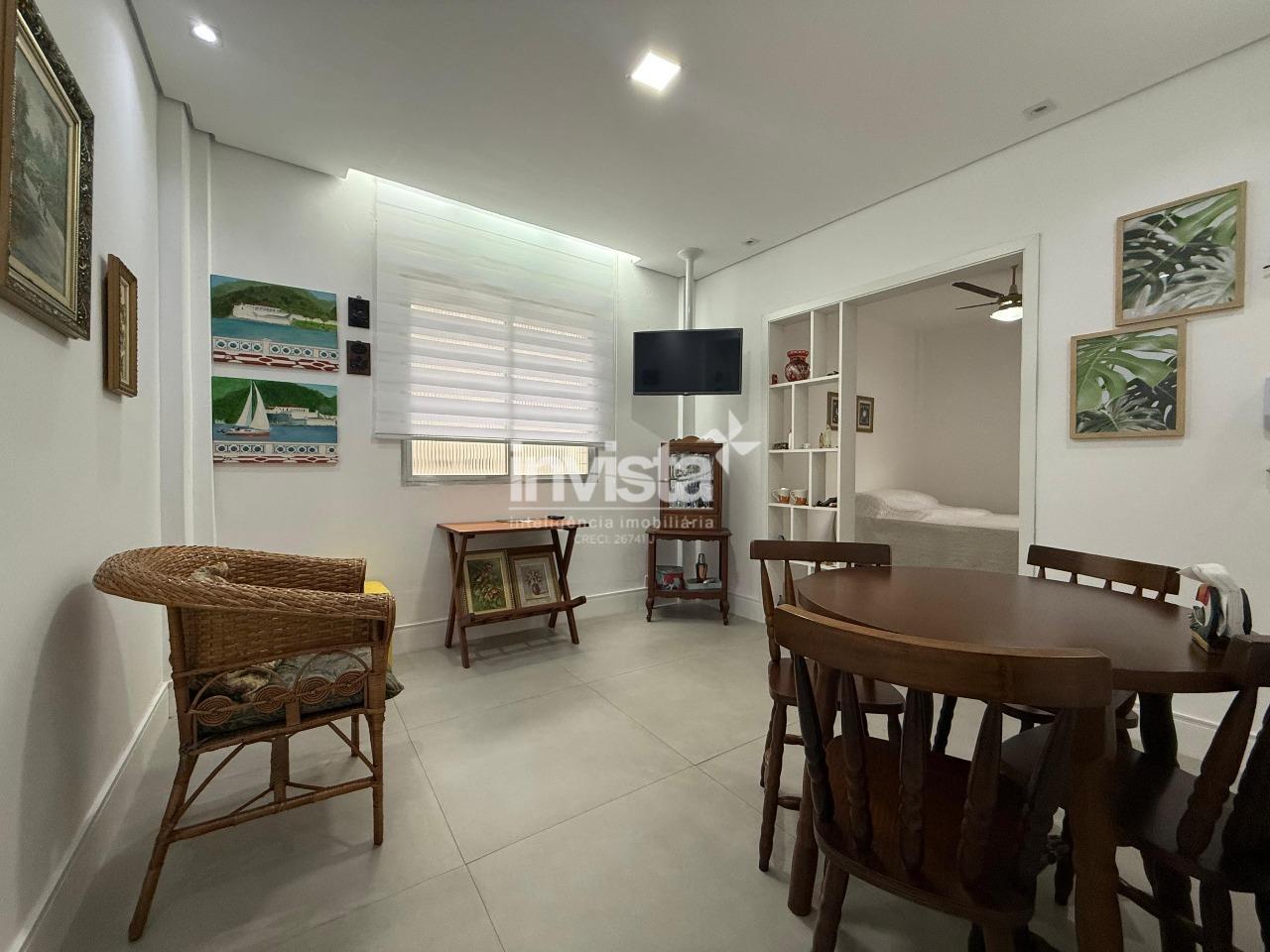 Apartamento de 1 dormitório totalmente reformado, com ambientes muito bem distribuídos e uma vista incrível para o mar direto da janela do quarto.