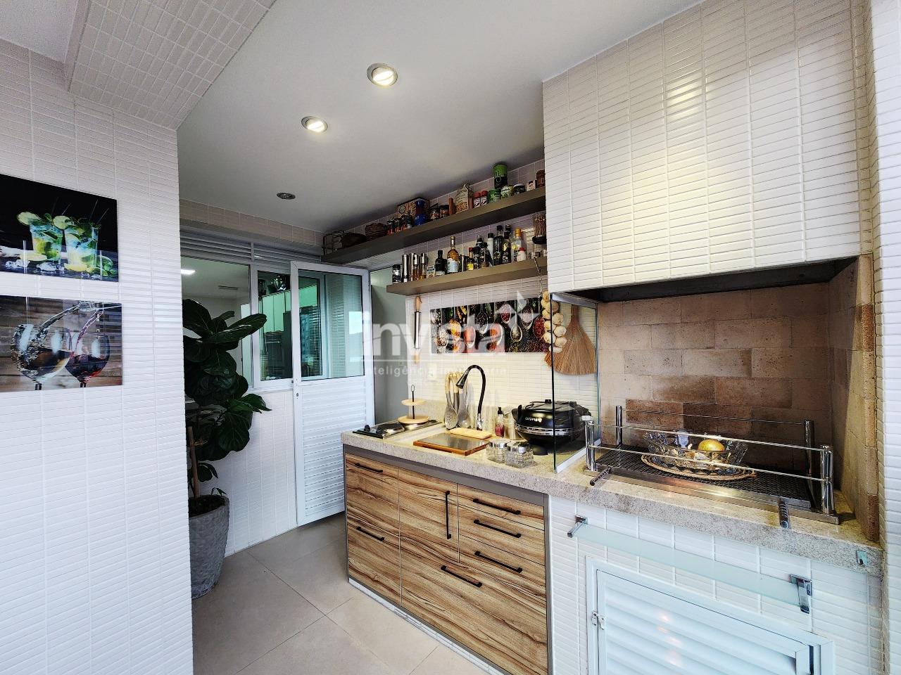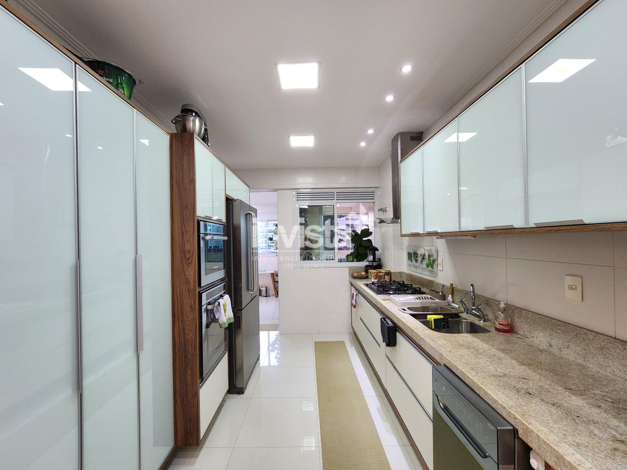 A cozinha é totalmente planejada, funcional e arejada, além de lavanderia independente e dependência completa. O apartamento oferece ainda vista livre e vista mar, garantindo luminosidade natural e uma sensação constante de bem-estar.