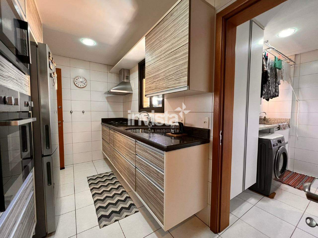 Passando para a cozinha, que também é repleta de planejados, temos ótima distribuição para os eletrodomésticos, com entrada independente e acesso a área de serviço que tem o tamanho ideal para as necessidades do dia-a-dia, com mais um banheiro a disposição.