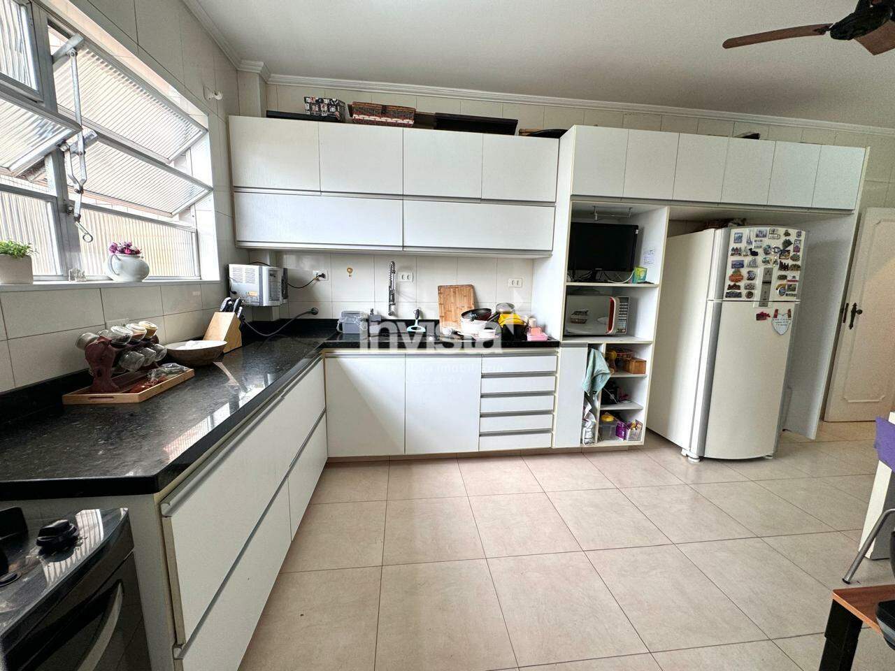 A copa cozinha, generosamente dimensionada, é um convite ao convívio familiar, equipada com armários planejados, um elegante gabinete e uma pia com bancada em granito. O sistema de gás encanado de rua acrescenta comodidade ao dia a dia.