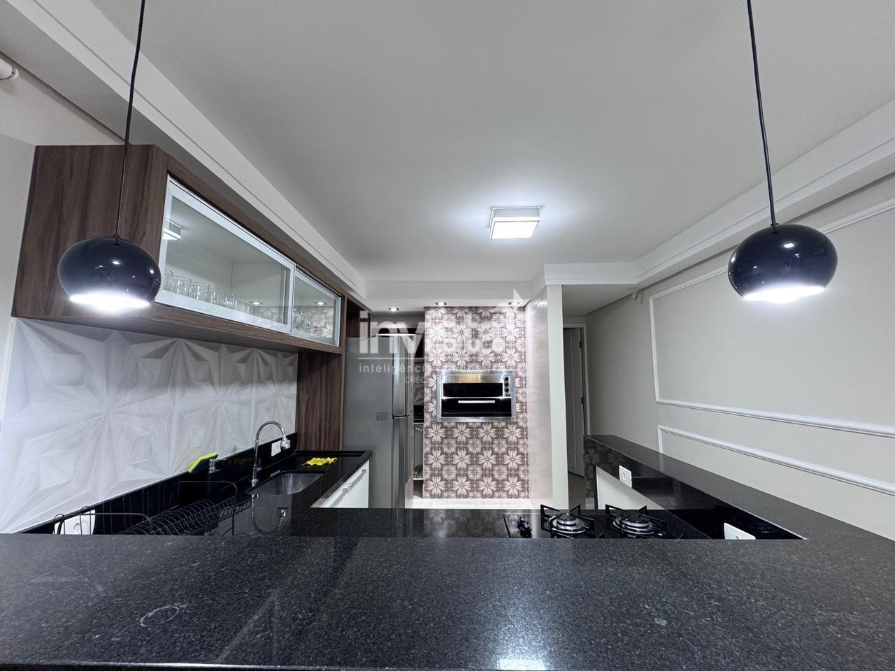 A cozinha conta com área de serviço integrada, extremamente arejada, garantindo boa ventilação natural e iluminação. Além disso, possui banheiro de serviço, trazendo mais praticidade para a rotina.