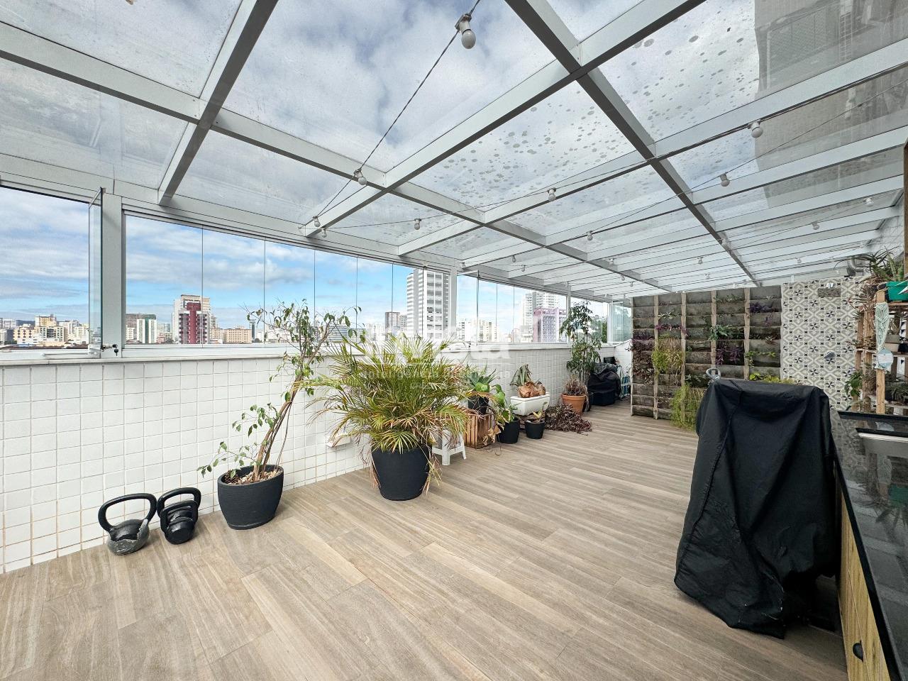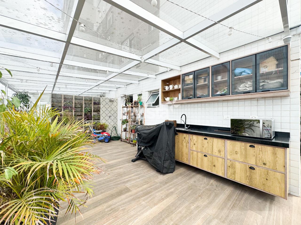 Chegando na cereja do bolo, a área externa do garden impressiona: Teto em pergolado completamente fechado, com envidraçamento, fazendo desse ambiente muito mais privativo e funcional para toda a sua família.