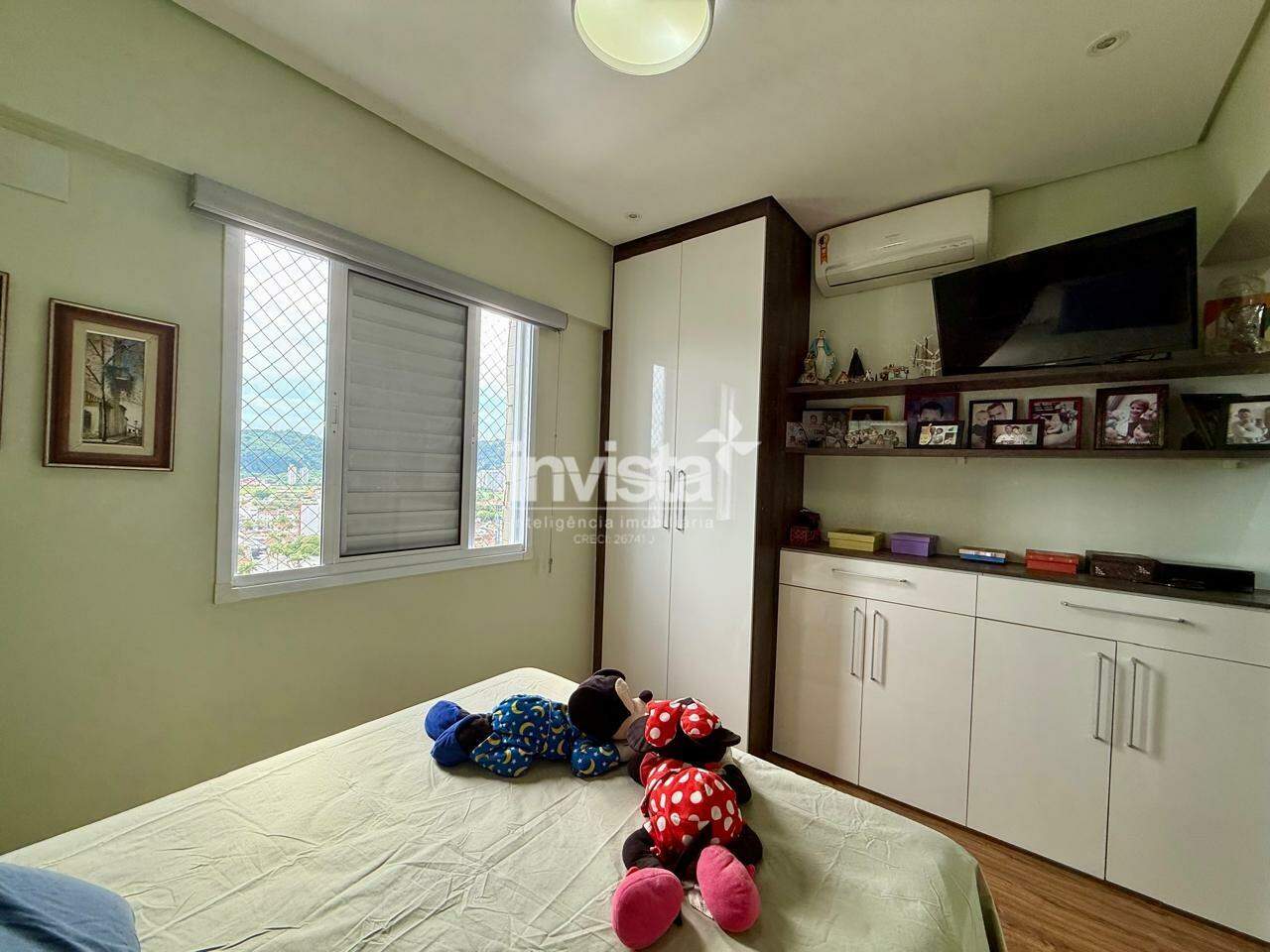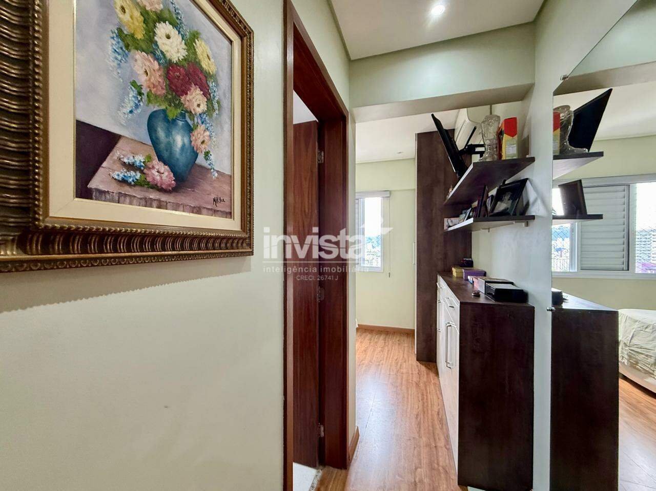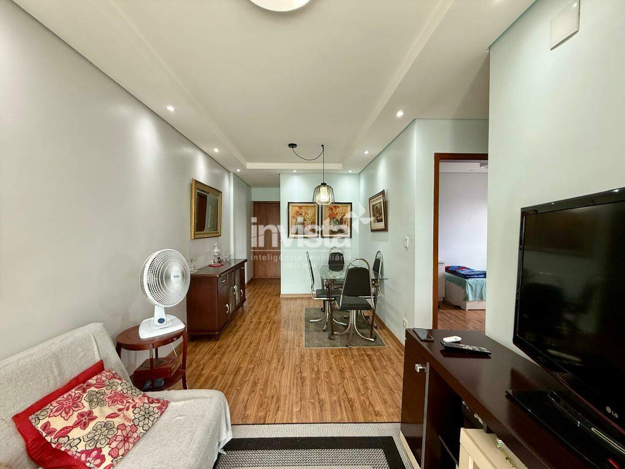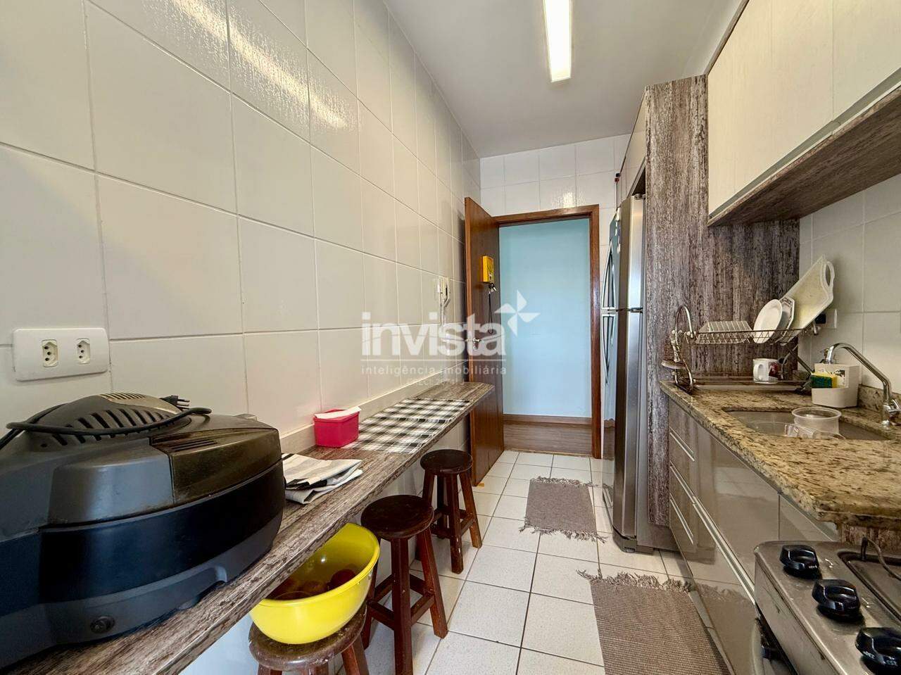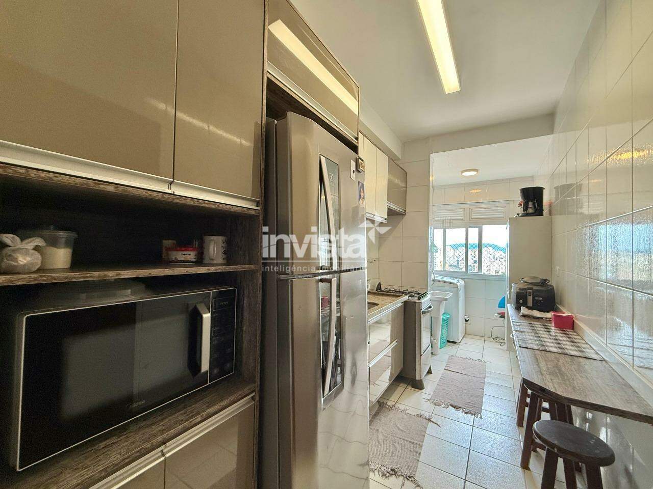 O apartamento conta com sala de estar e jantar, cozinha, área de serviço, banheiro social e 2 dormitórios, sendo 1 suíte.