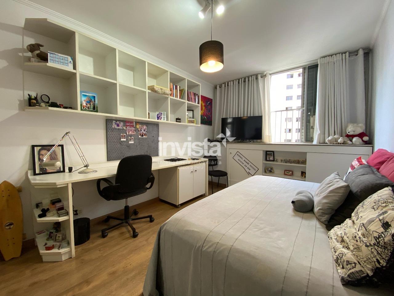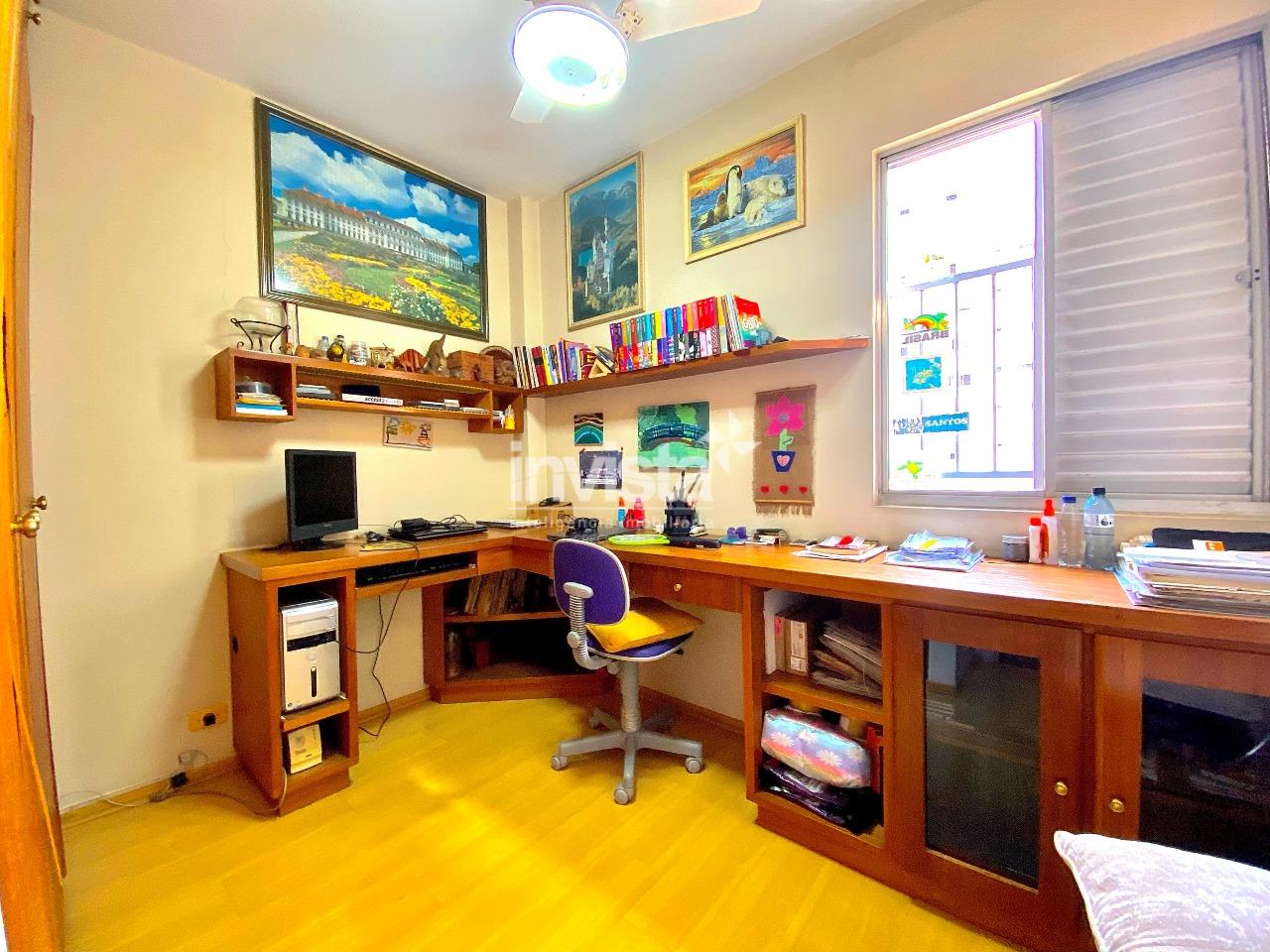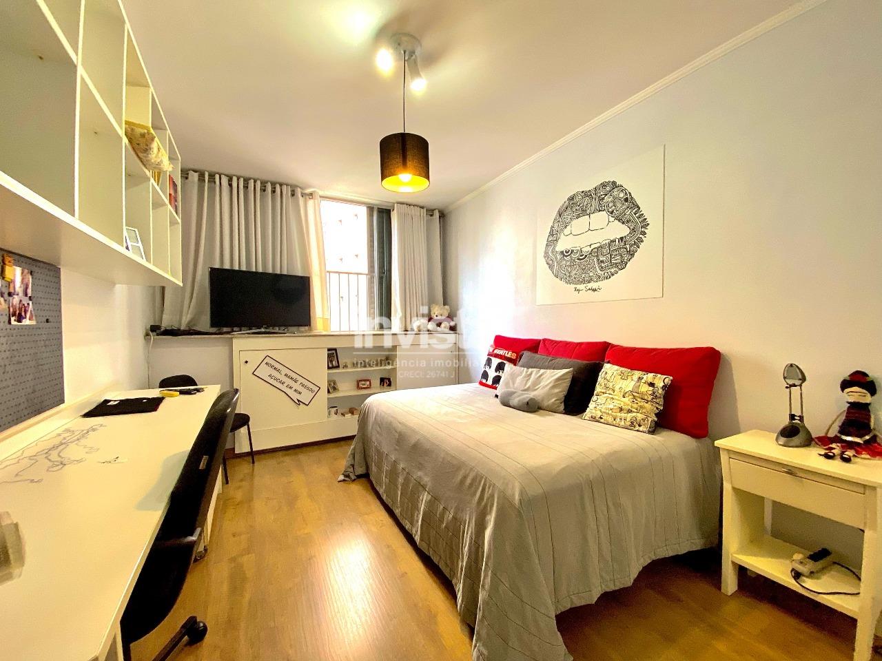 Apartamento espaçoso sala com mais de 30m2 conta com 3 dormitórios, sendo 1 suíte com closet, além de dependência completa. Conta com cozinha, copa, lavabo e ampla área de serviço. Localizado em um dos bairros mais desejados de Santos, em uma rua tranquila a apenas 3 quadras da praia. Oferece privacidade total com 2 entradas independentes. O prédio dispõe de elevador e portaria 24 horas. Armários embutidos em todos os dormitórios, sala, cozinha e banheiros. Garagem com 2 vagas demarcadas.