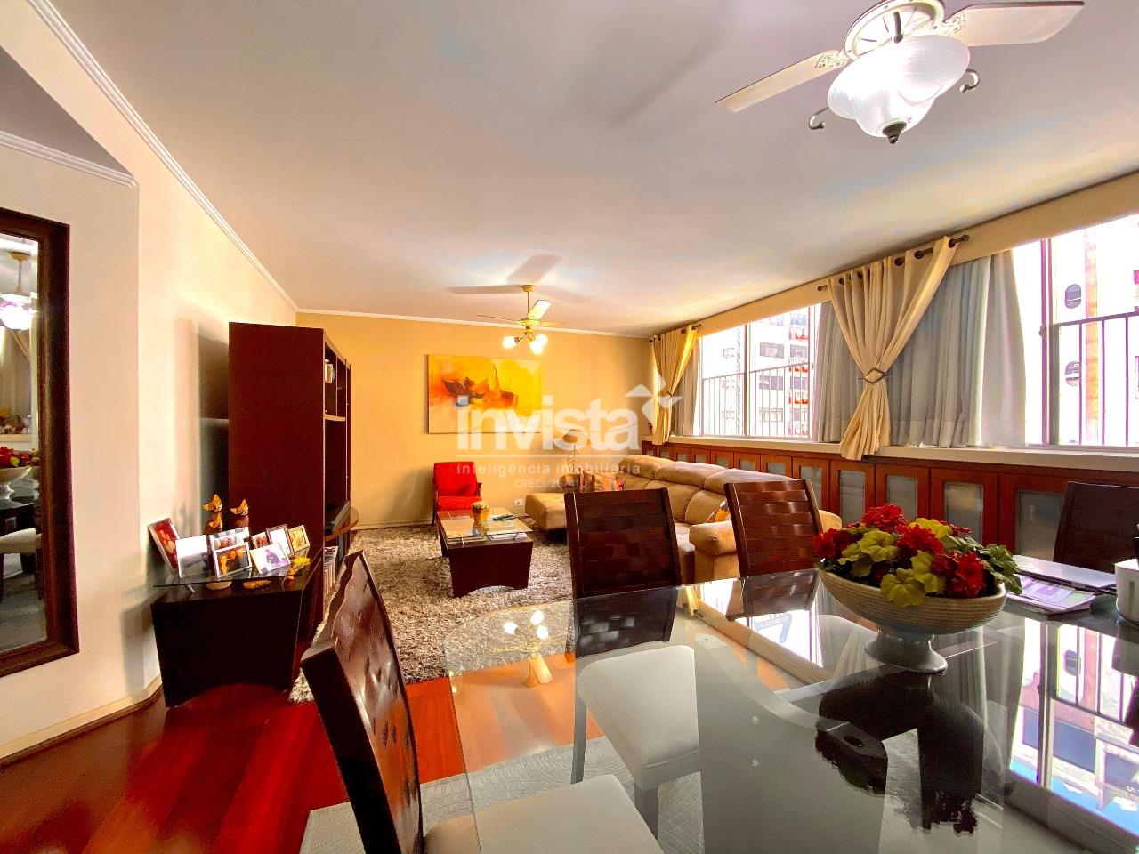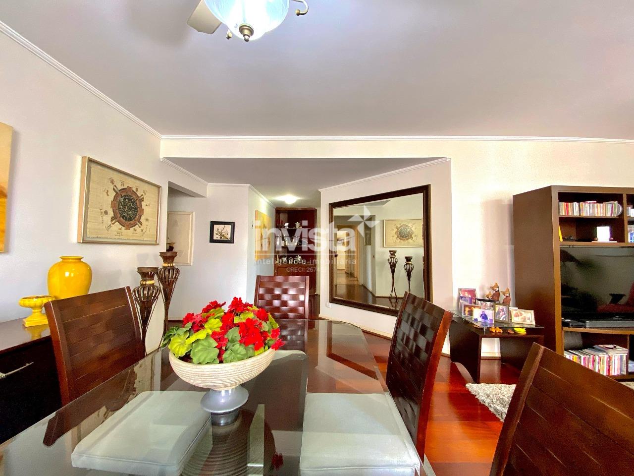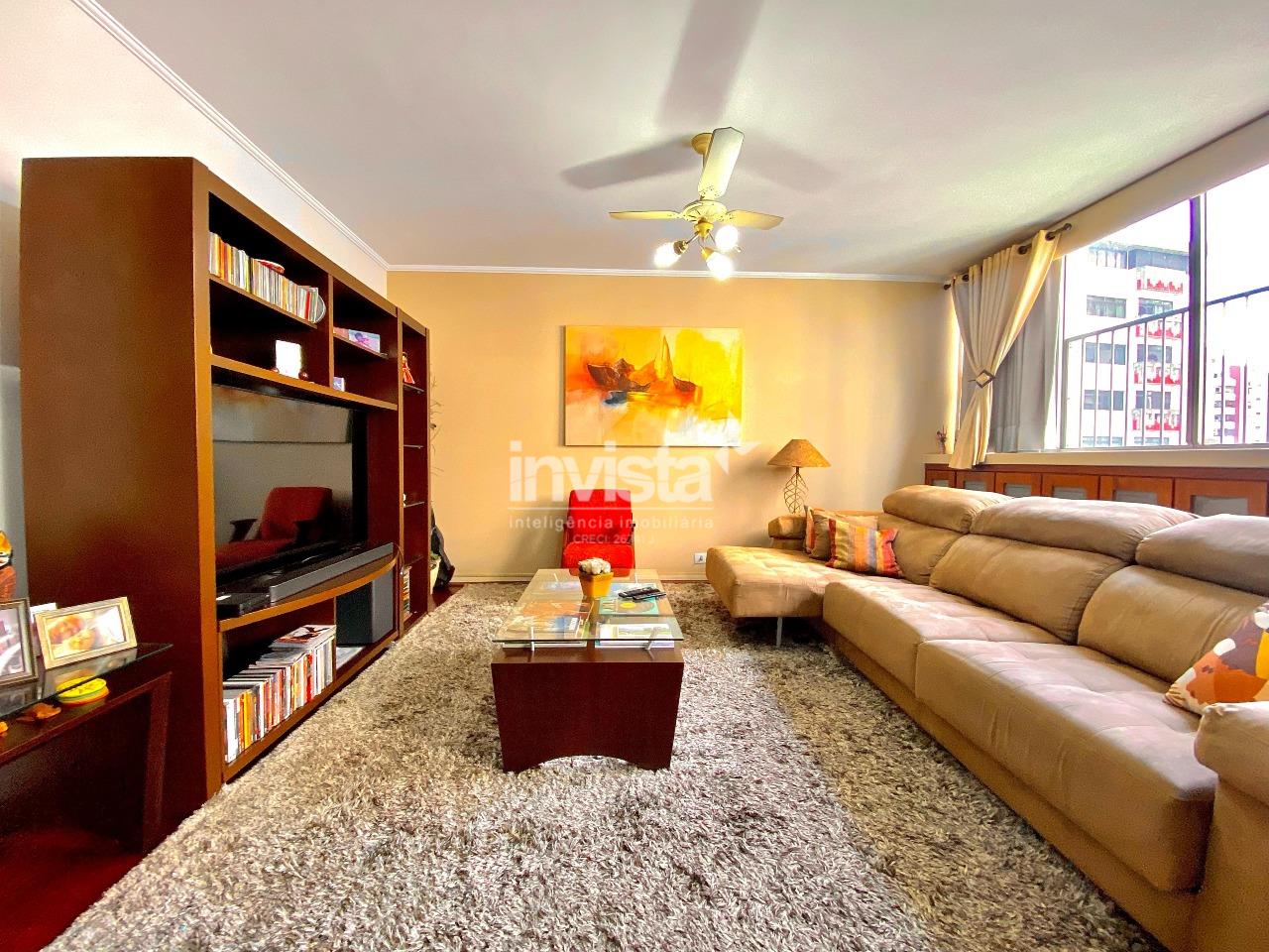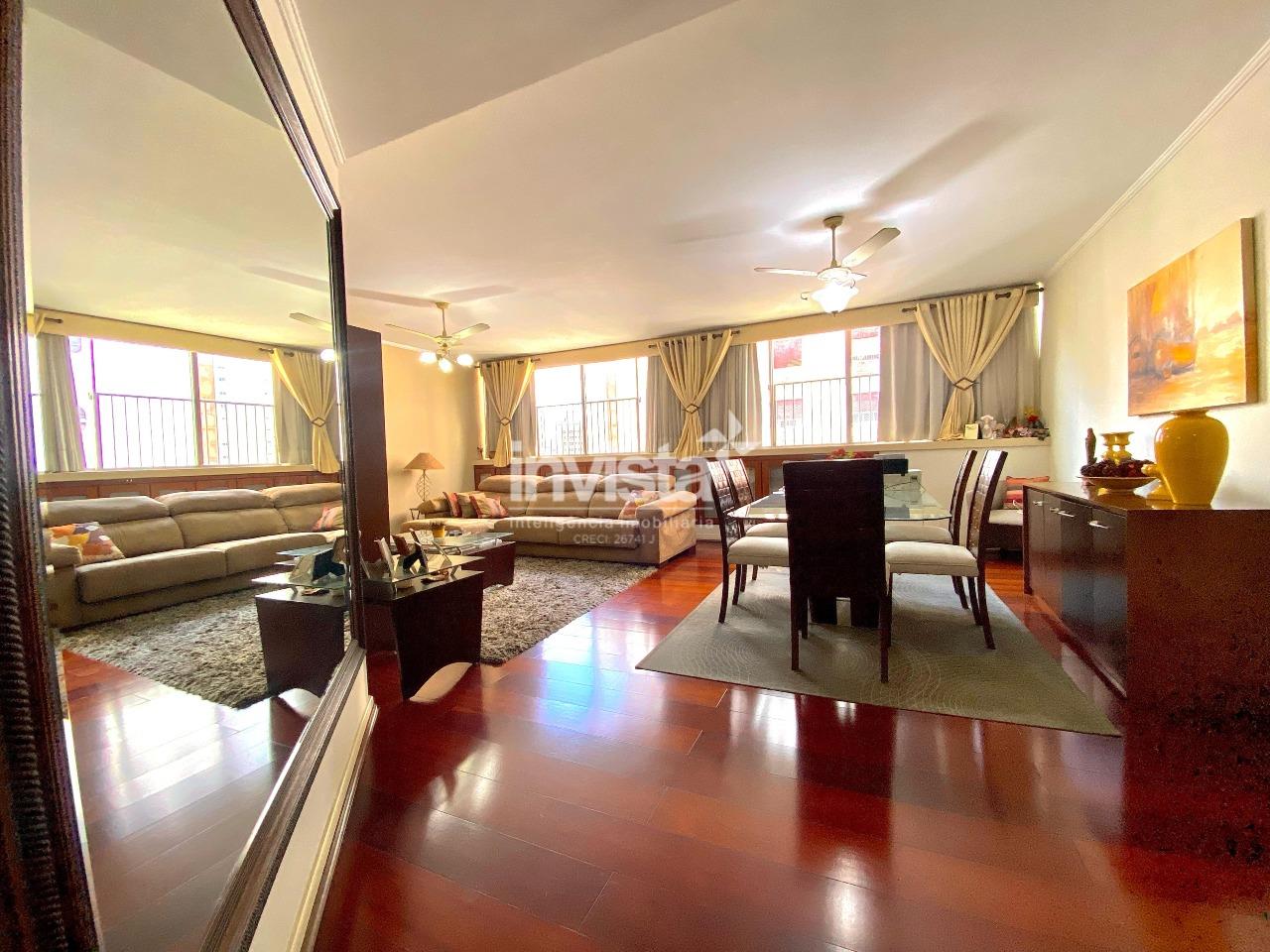 Apartamento espaçoso sala com mais de 30m2 conta com 3 dormitórios, sendo 1 suíte com closet, além de dependência completa. Conta com cozinha, copa, lavabo e ampla área de serviço. Localizado em um dos bairros mais desejados de Santos, em uma rua tranquila a apenas 3 quadras da praia. Oferece privacidade total com 2 entradas independentes. O prédio dispõe de elevador e portaria 24 horas. Armários embutidos em todos os dormitórios, sala, cozinha e banheiros. Garagem com 2 vagas demarcadas.