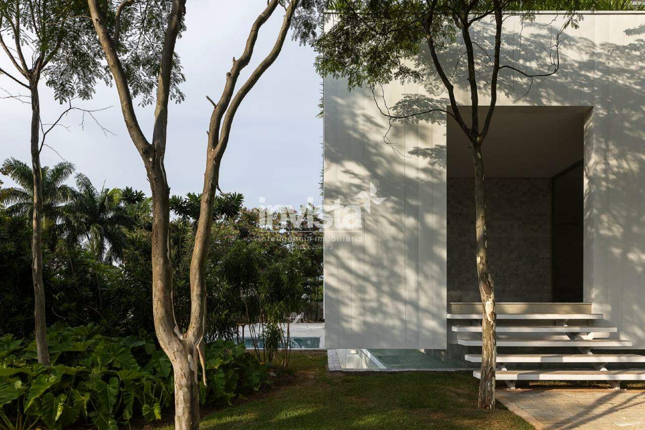 Com uma área construída de 1.000 m², a casa se destaca por sua integração perfeita com a natureza, construída sobre um espelho d’água. São 4 suítes, incluindo uma no térreo, além de um escritório.