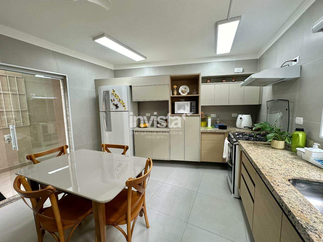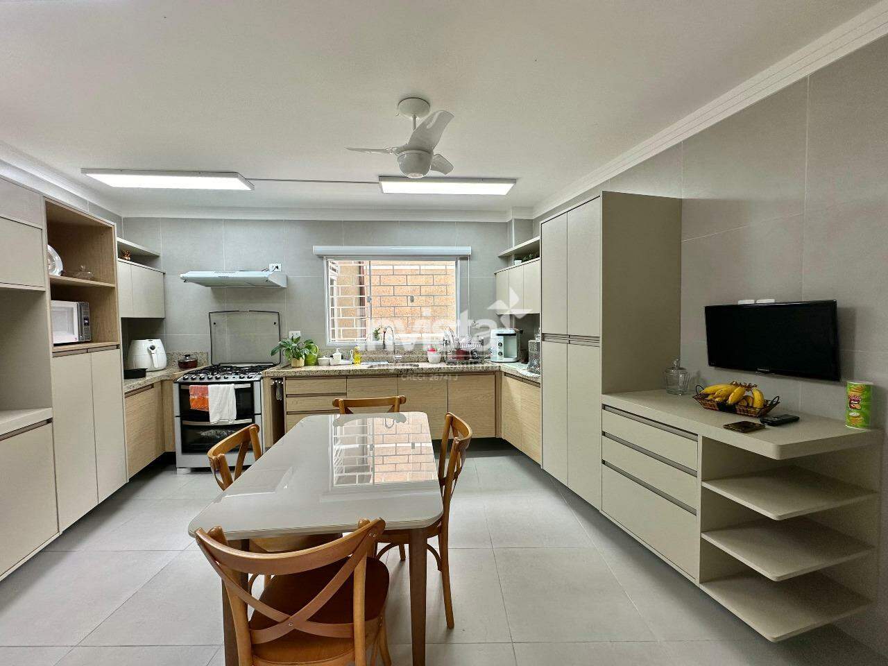 Primeiro pavimento: sala bem ventilada para 2 ambientes com lavabo, cozinha repleta de móveis planejados, com acesso à área de serviço e área externa.