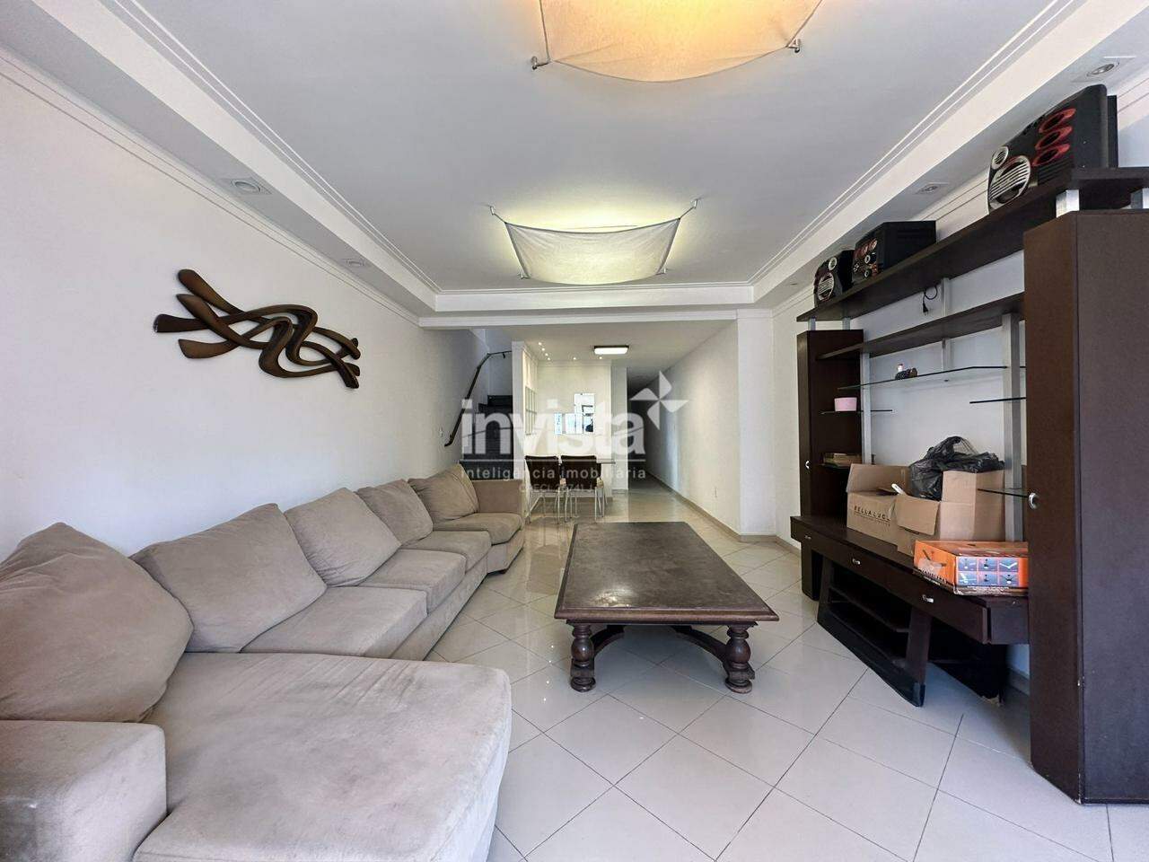 Primeiro piso há uma sala com dois ambientes, três quartos, sendo um deles uma suíte, uma cozinha espaçosa e uma área de serviço.