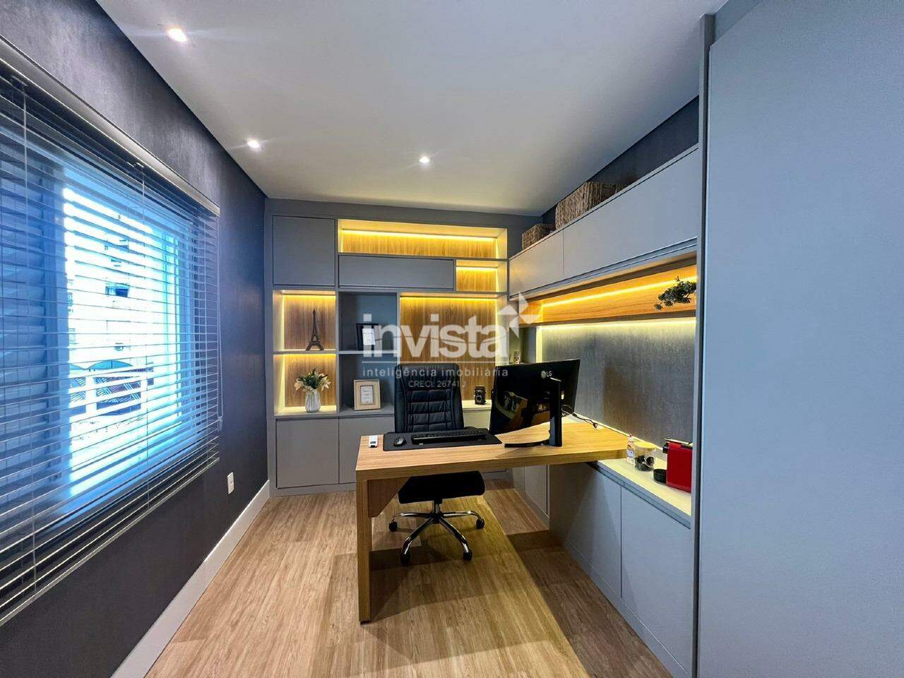 No segundo piso, há duas suítes, uma delas revertida para escritório, enquanto o terceiro piso abriga a suíte master, completa com closet.