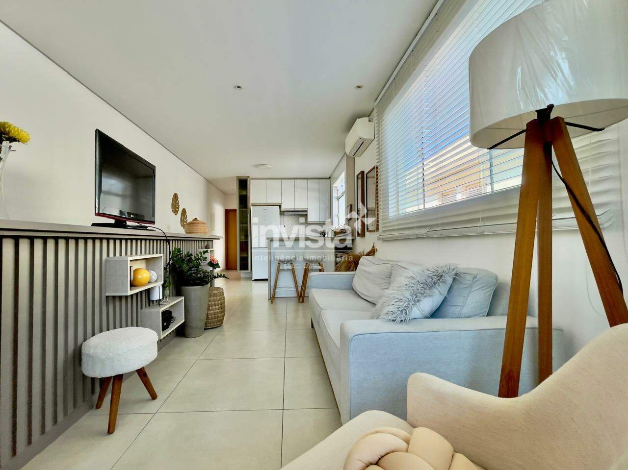 O imóvel conta com sala para dois ambientes, cozinha americana, varanda, dois dormitórios, sendo um suíte, e banheiro social.