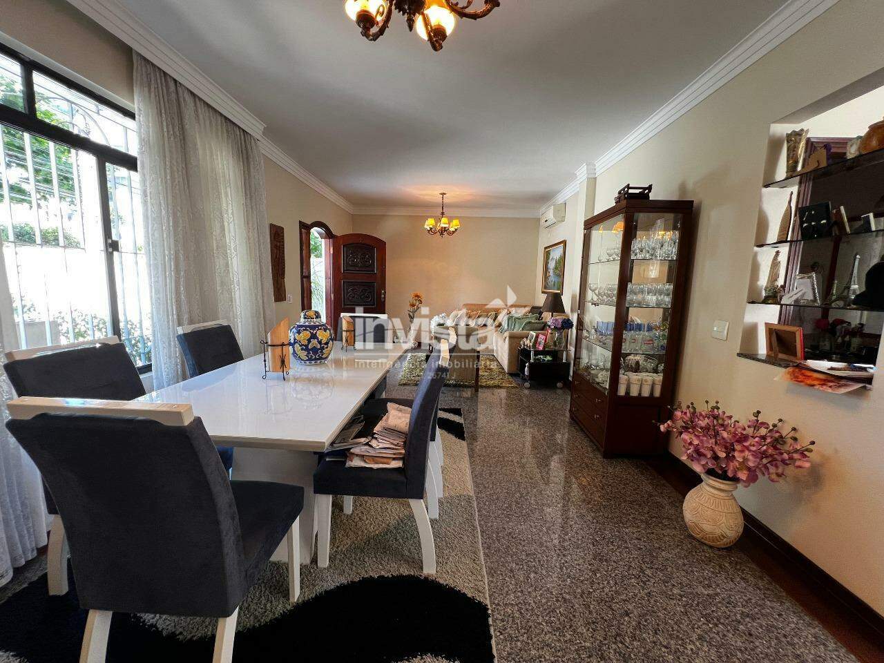 -Térreo: Sala de estar, sala de jantar, sala de tv, 2 lavabos, cozinha enormel, área de serviço, quintal coberto com churrasqueira, dependência empregada, banheiro de serviço, quintal de frente e garagem para 4 carros com acesso frontal e lateral.