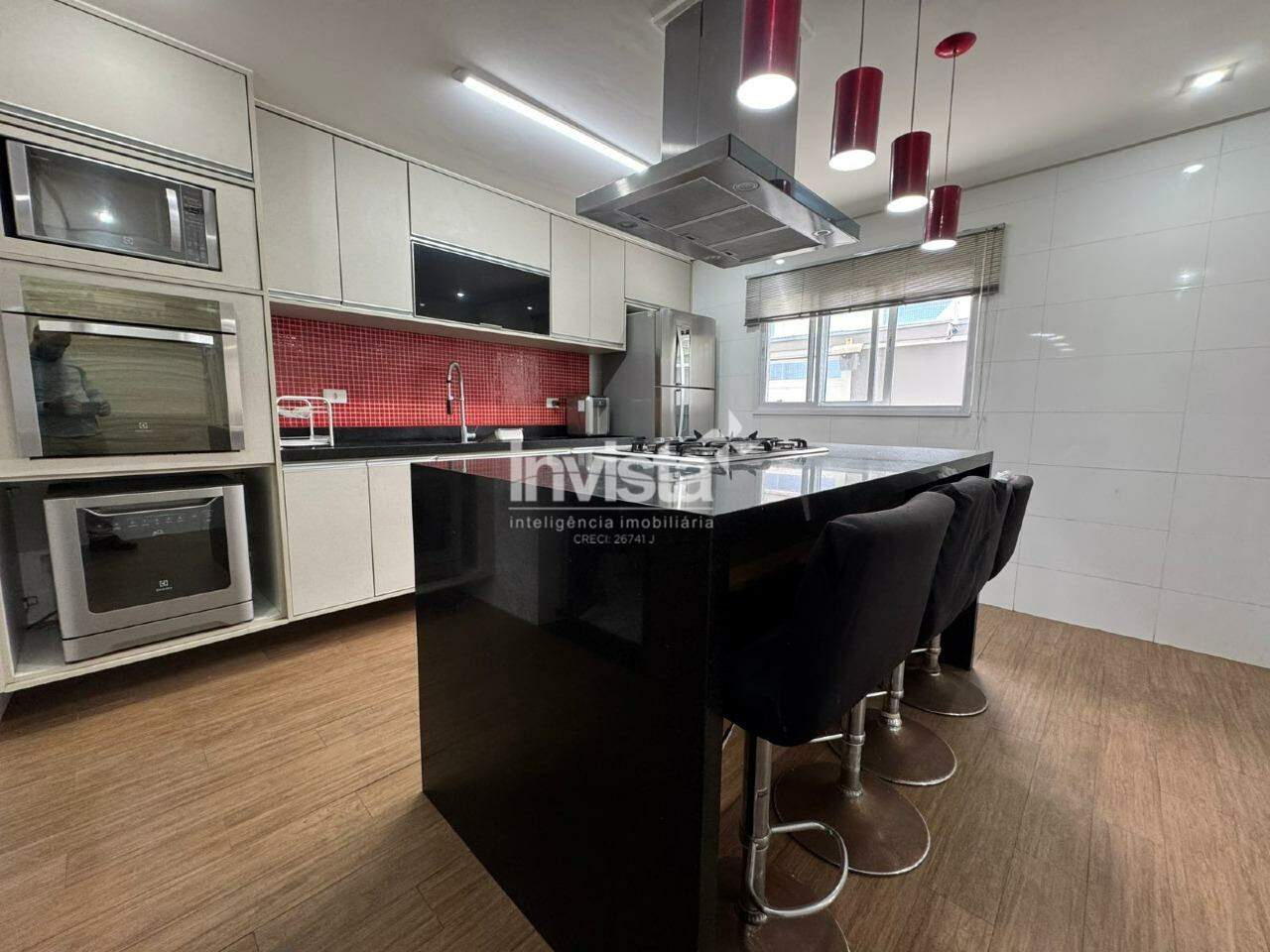 • Cozinha Completa com Ilha: Conta com fogão, forno elétrico, geladeira, lava-louças e exaustor