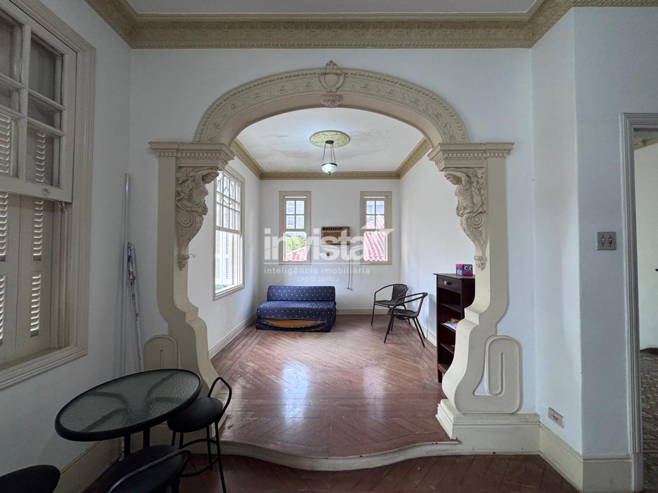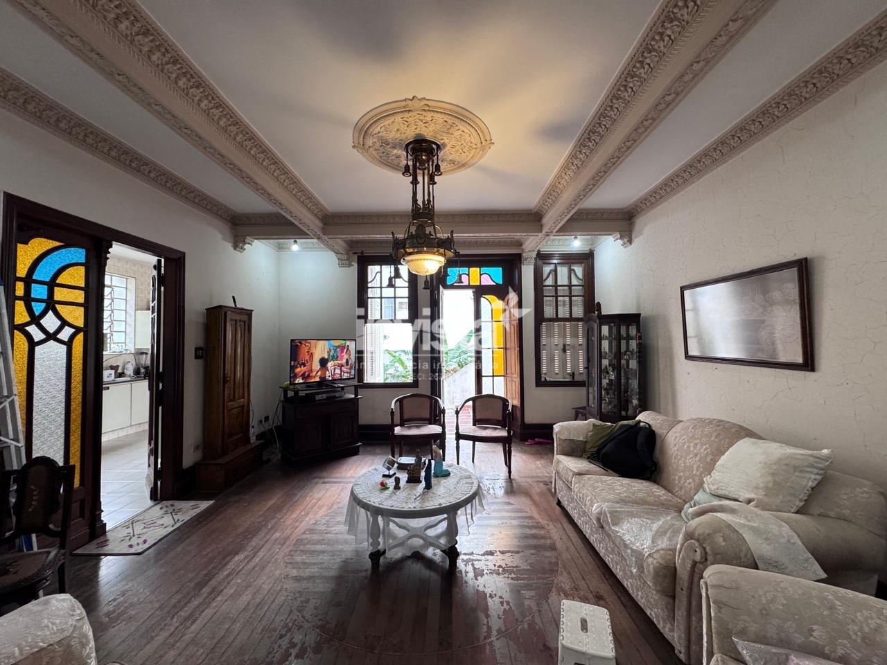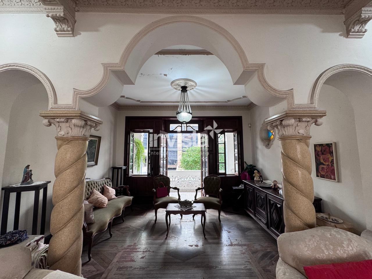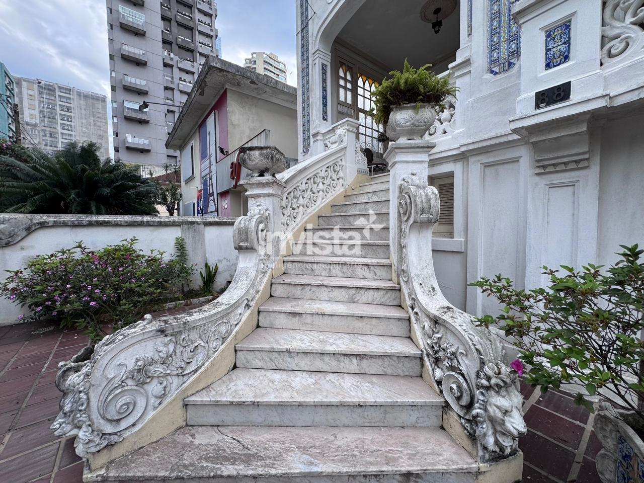 A casa é rica em detalhes, com muitas janelas, excelente iluminação e ventilação, preservando o melhor do estilo clássico santista.