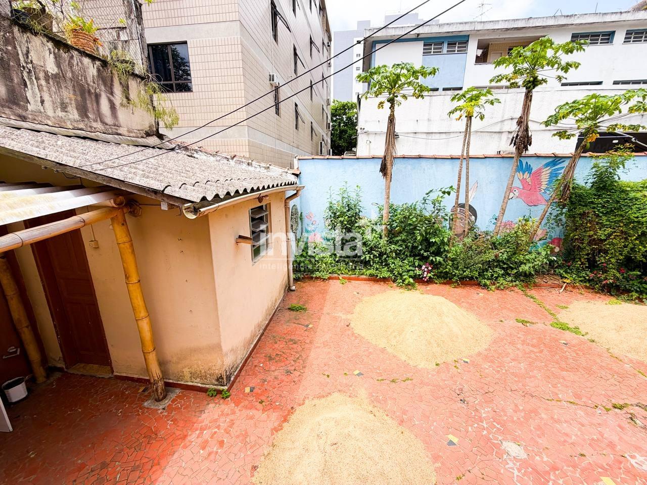 Localizada em rua pequena e tranquila do bairro Embaré, próximo a praia, com quintal enorme, edícula, 4 vagas para carro.
