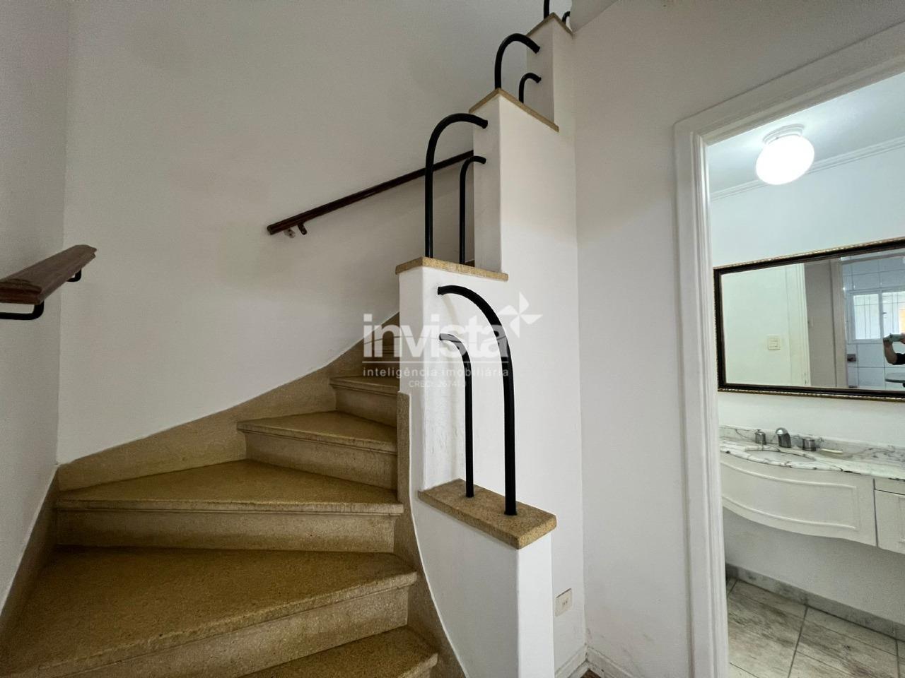 Sobrado geminado disponível para venda na Aparecida, em Santos, com 3 dormitórios (sendo 1 suíte), 2 vagas de garagem e um diferencial que encanta desde a entrada: um ambiente arborizado que transmite paz e bem-estar, como se você nem estivesse na cidade.