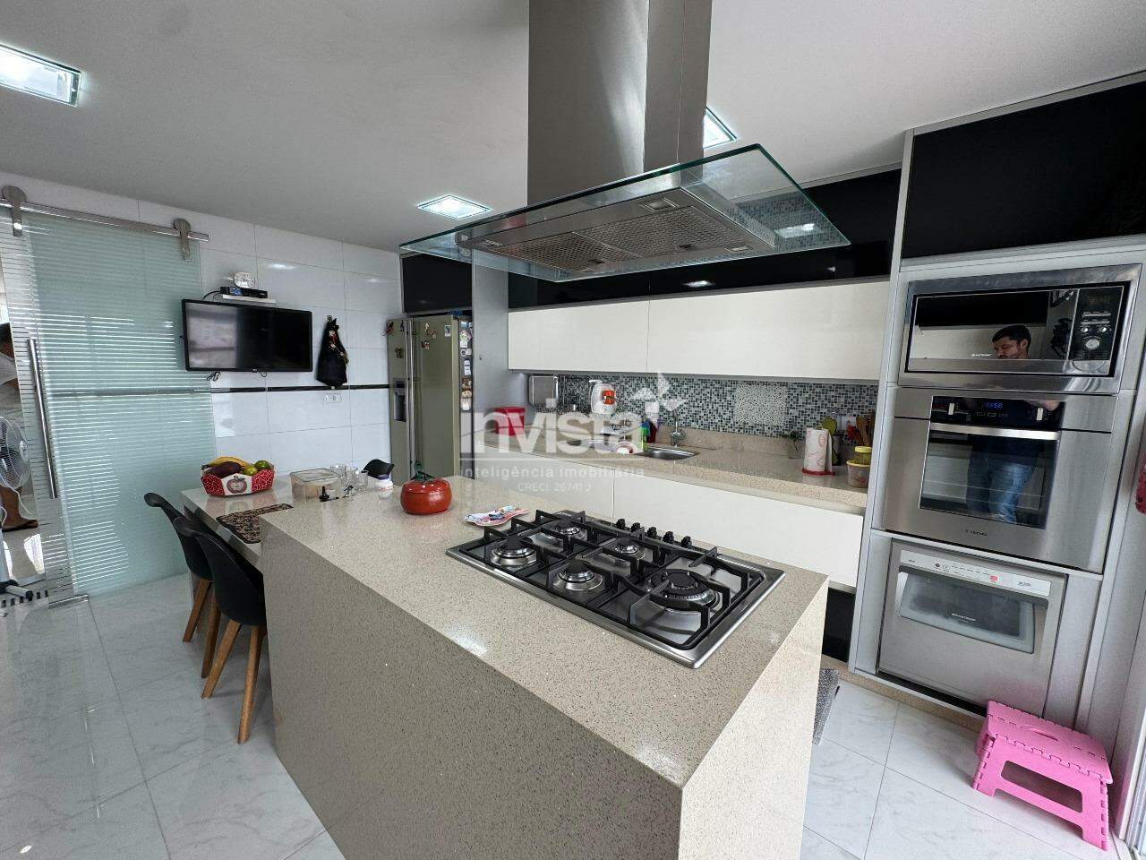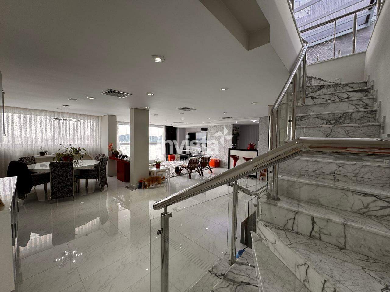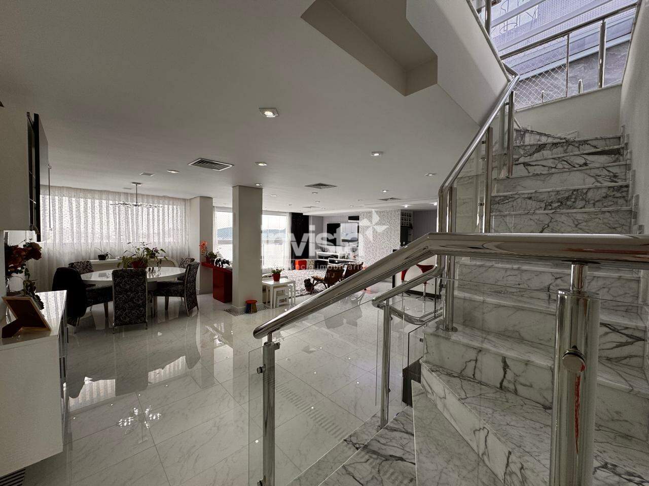 Entre os diferenciais, destacam-se o elevador com acesso aos três níveis, quatro vagas de garagem demarcadas e um edifício recente com infraestrutura de lazer completa. Tudo isso em uma localização estratégica e valorizada na cidade de Santos.
