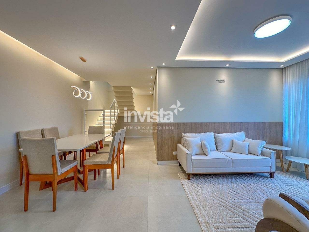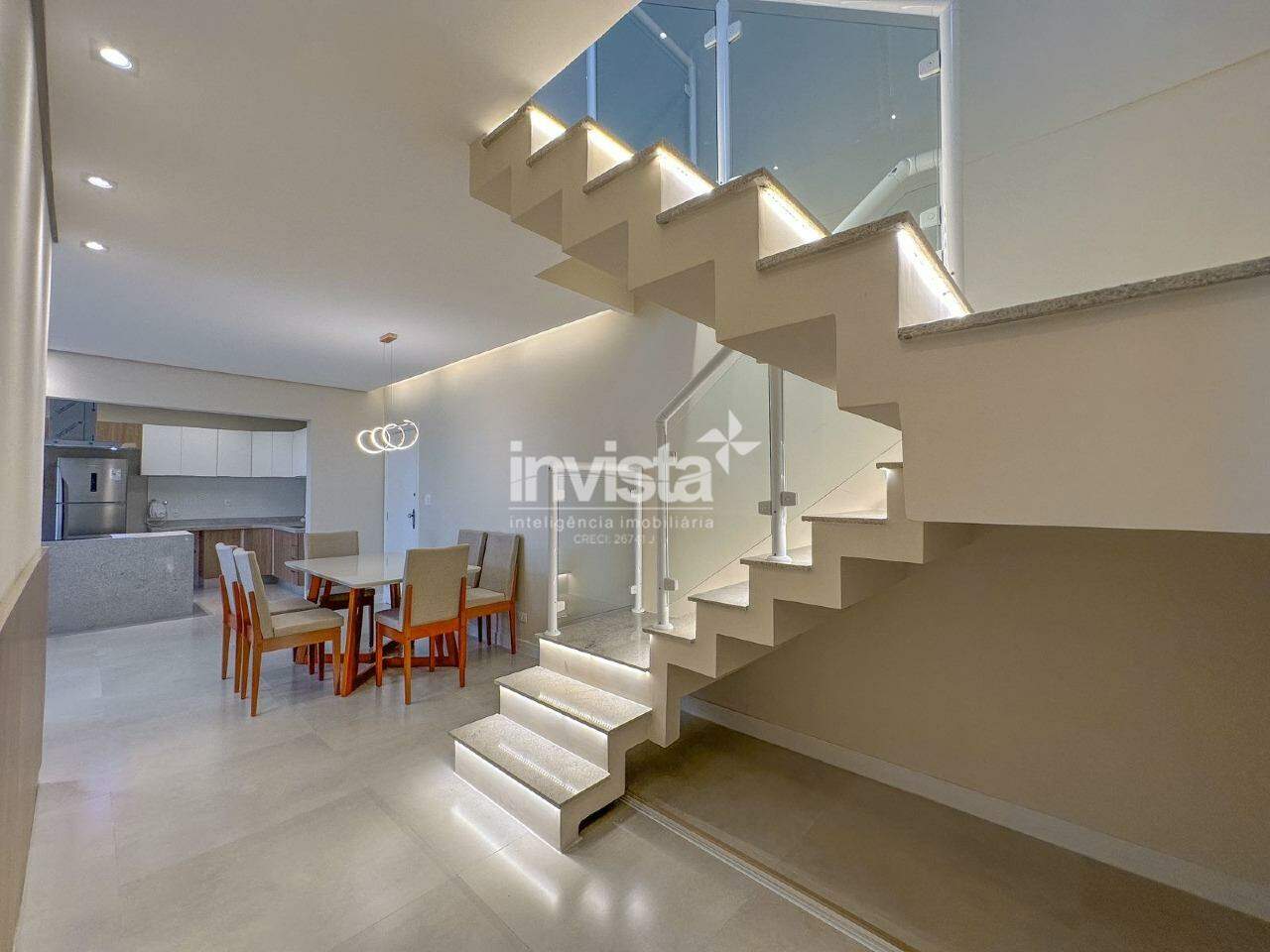 No 1º pavimento temos mais uma sala para dois ambientes que foi totalmente integrada com a cozinha planejada, trazendo um conceito mais aberto, moderno, e amplo. Acesso para área íntima que possuí 3 quartos, sendo um deles suíte, e um deles com varanda de frente. Ainda temos uma área de serviço que é completa, com quarto e banheiro.
