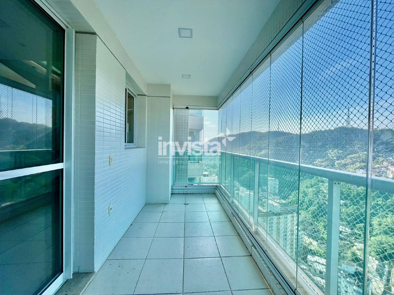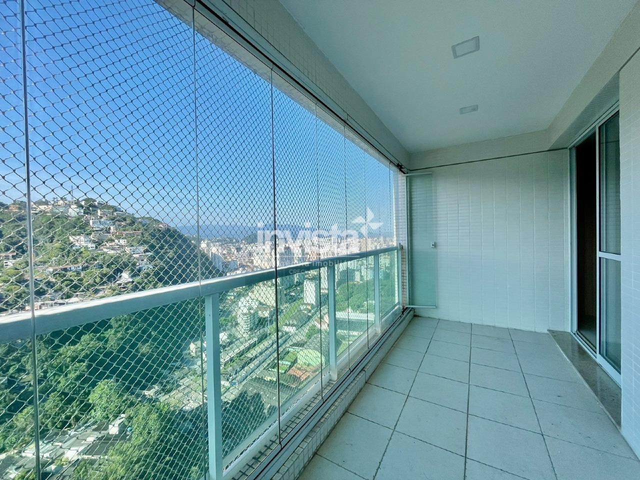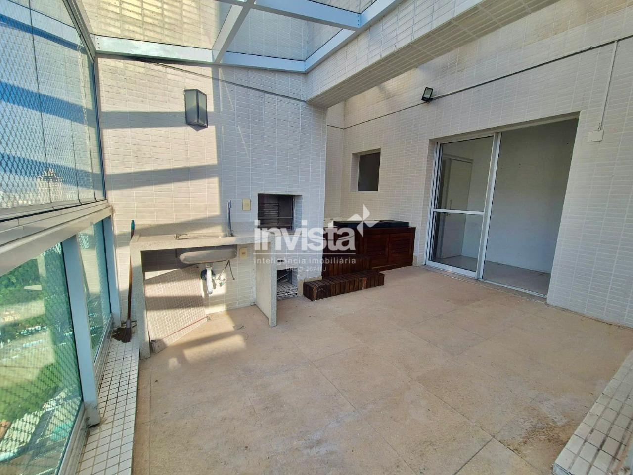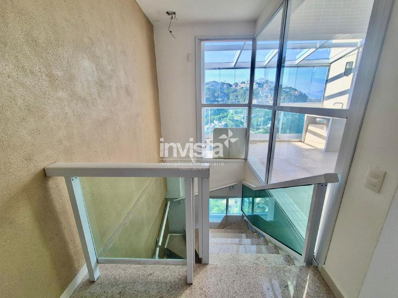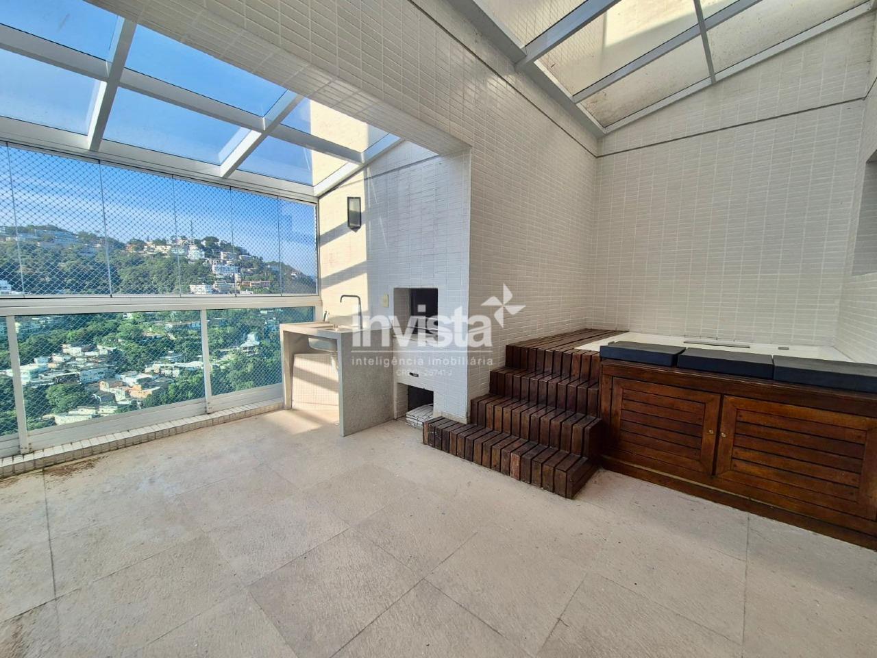 Cobertura de alto padrão à venda no bairro José Menino, em Santos. São 153 m² de área interna, com 3 suítes espaçosas, 4 banheiros, 2 salas amplas, 2 varandas e uma vista privilegiada para as montanhas.